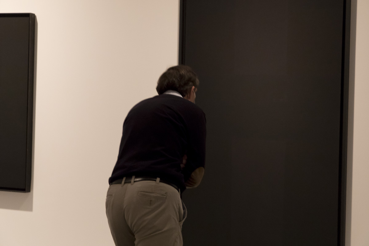 «Hay algo misterioso, incluso místico, en los lienzos negros cuadrados de 60 x 60 pulgadas de Ad Reinhardt. Concebidos para la contemplación, se van revelando con el paso del tiempo», escribe Lynn Zelevansky. Algunas de las célebres pinturas negras a las que se refiere la comisaria invitada de la muestra –casi imposibles de fotografiar y que requieren la presencia directa y pausada del espectador– pueden apreciarse ahora y hasta el 16 de enero en la sede madrileña de la Fundación.