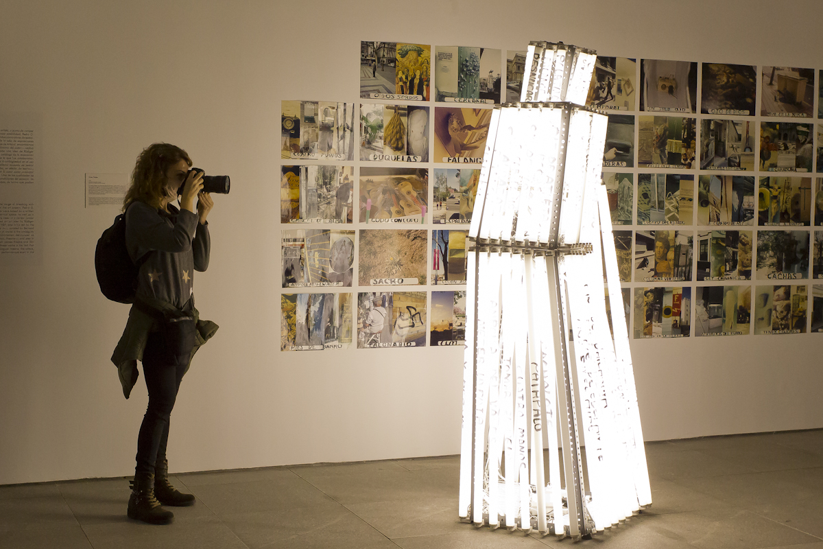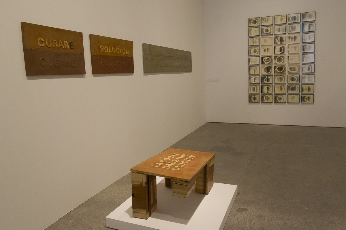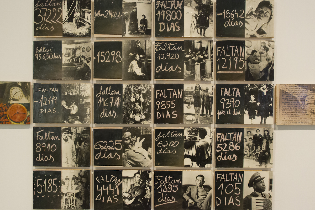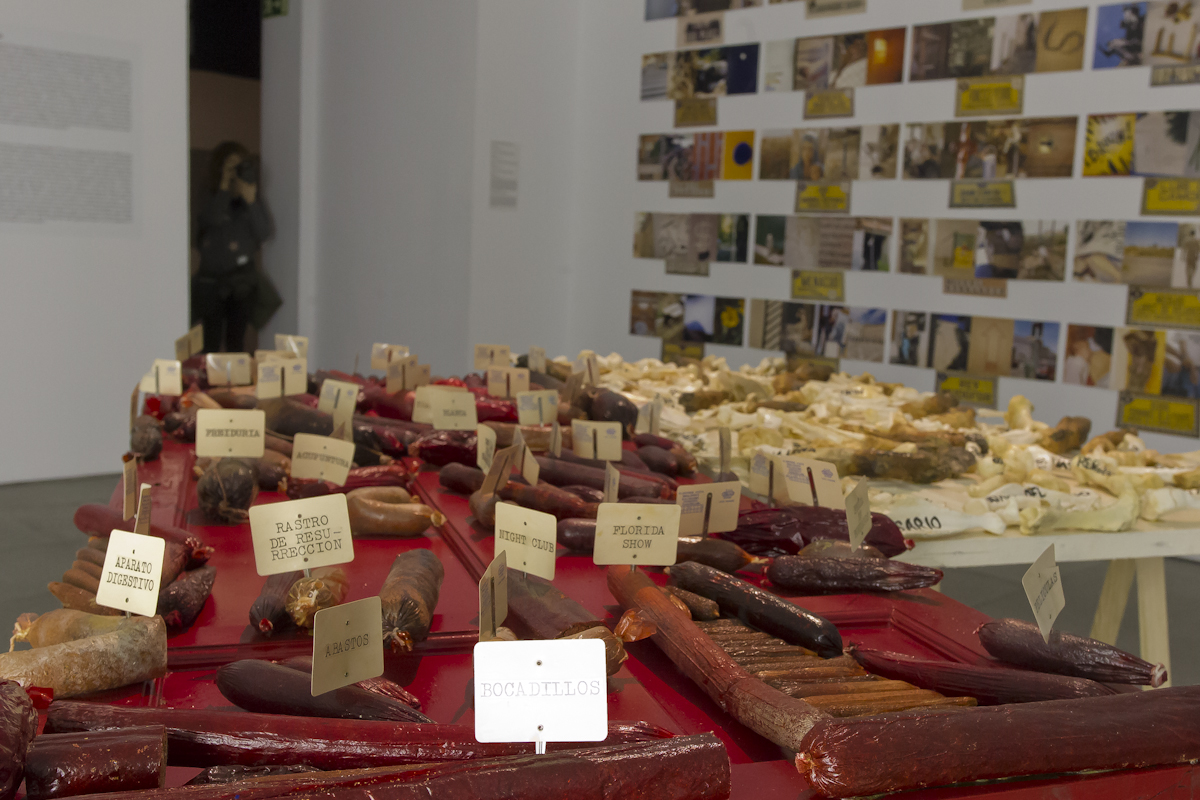 La muestra incluye las series ¿Llegaremos pronto a Sevilla? (1995-1999), El tiempo de la bomba (1993-1997), El almacén de las ideas (1987-1990); proyectos destacados como La sección áurea (1989-1992), Un mundo R.A.R.O. (1990-1993), El fantasma y el esqueleto (1998-1999); así como obras que formaron parte de exposiciones relevantes como Magatzem d’idées (Sala Moncada de la Fundación “la Caixa” de Barcelona, 1988), Antes y después del entusiasmo 1972-1992 (KunstRain 89 de Ámsterdam, 1989) y El sueño imperativo (Círculo de Bellas Artes de Madrid, 1991).