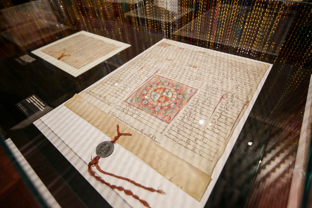 Otra de las joyas de la exposición es la bula del papa Alejandro IV, fechada el 6 de abril de 1255, confirmando el Estudio General de Salamanca, que viaja desde el archivo de su universidad hasta Toledo.