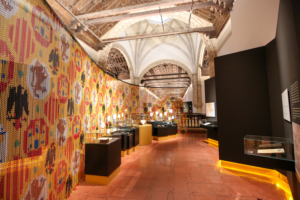 Una de las piezas textiles más significativas es la casulla del infante don Sancho de Aragón, arzobispo de Toledo. De extraordinaria calidad, esta vestimenta eclesiástica reúne las armas de Castilla, Aragón y las águilas negras de la familia Staufen, a la que pertenecía la madre de Alfonso X, Beatriz de Suabia. La rica tela fue probablemente un regalo de Alfonso X a su cuñado don Sancho, hijo de Jaime I de Aragón, que fue arzobispo de Toledo (1266 – 1275).
