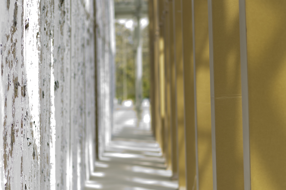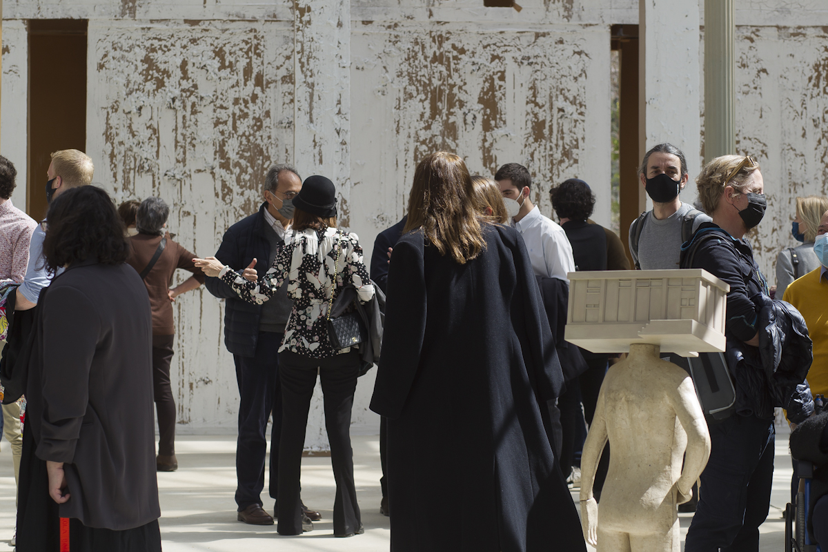 En esta intervención, Bunga hace públicas historias fuera del foco –al igual que en su reciente proyecto Home (2022) para la Fundação Calouste Gulbenkian–, pero además difumina el límite entre interior y exterior, haciendo al edificio partícipe del medio exterior, de un ciclo natural en continuo devenir que lo define y condiciona. Asimismo, la naturaleza reivindica su espacio en la construcción de cartón y se abre paso a través de la hojarasca de la pintura.