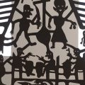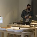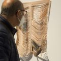 Más que lo discursivo, lo importante en esta muestra es el gesto. El gesto de tejer y destejer, reflejado en las obras de Teresa Lanceta y en las de la misma Riera. Pero, también el gesto de filmar. De ahí que la artista haya construido diversos objetos que se reparten a lo largo de toda la muestra y que para ella constituyen cámaras de cine, no tanto porque graben nada, sino porque con su ruedas y movimientos repiten el gesto de las cámaras del cine mudo.