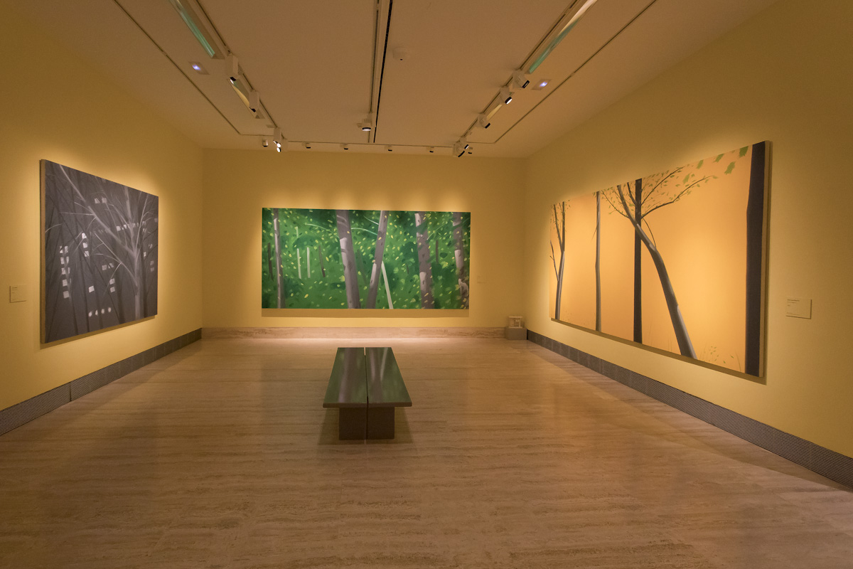 En Woods (1991), los árboles son muy diferentes entre sí –rectos, torcidos, gruesos o delgados– y la luz que cae a través de las hojas le sirve para crear profundidad y claroscuros. En Gold and Black II (1993) los troncos y las ramas se integran con el fondo amarillo en un mismo plano, mientras que Apple Blossoms (1994) recuerda inevitablemente a la técnica del dripping de Jackson Pollock. Estas variaciones lumínicas se mantienen en el trabajo de Katz durante el siglo XXI, y pueden verse en obras como Golden Field #3 (2001), Orange and Black (2006) o Sunset #6 (2008).