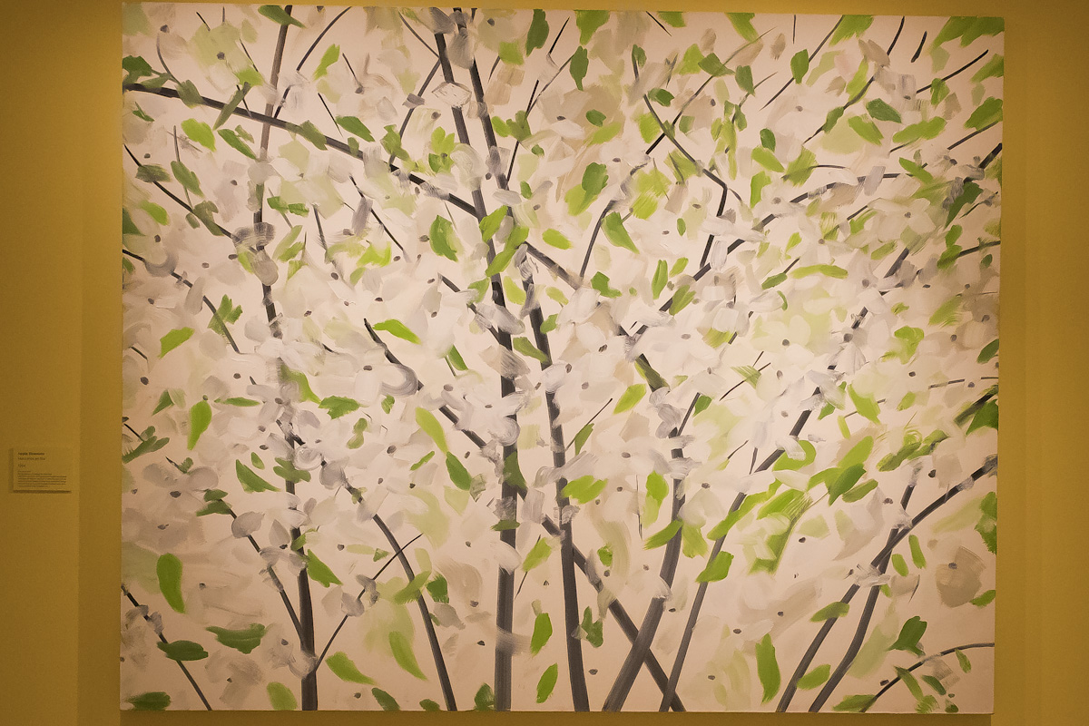 A finales de la década de 1960 pintó grandes primeros planos de flores, solas o en pequeños ramos, como White Lilies (1966) y Rose Bud (1967). Le sirven para ensayar composiciones, superponiendo formas sin las limitaciones de los cuerpos, que deben mantener una verosimilitud en el espacio, y le permiten profundizar en su estudio del movimiento. Al igual que los retratos, son obras de gran tamaño y no se consideran naturalezas muertas ni fragmentos de paisajes. A principios del siglo XXI volvió a pintar flores, cubriendo lienzos enteros con capullos similares a los de esa primera época.
