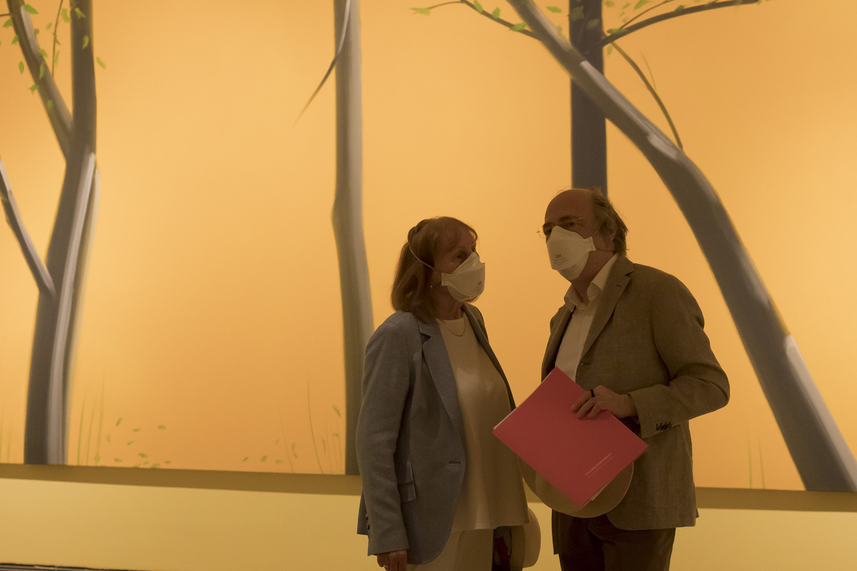 La exposición, comisariada por Guillermo Solana, cuenta con el apoyo del propio artista y de su estudio, que han seguido en detalle un proyecto que reúne 35 óleos de gran formato, acompañados de algunos estudios, que permiten realizar un completo recorrido por los temas habituales de Katz: sus retratos individuales, múltiples y de grupo, alternados con sus reconocibles flores y envolventes paisajes de vivos colores y fondos planos.