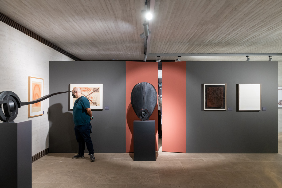 En ese tiempo, el artista participó activamente en la elaboración del Manifiesto de El Hierro y firmó el Documento Afrocán, ambos datados en 1976, pocos años después de haber concebido la escultura Oölogy-el Afrocán (1973), cimiento de esta serie en la que el óvalo representaría la soledad del hombre contemporáneo, moldeando un oráculo-espejo en el que se refleja, en palabras del comisario, “la propia identidad en la radical otredad”. El otro no difiere de uno mismo, y es esa voz y la herencia común lo que puede emerger en periodos de renacimiento y apertura tras años de oscuridad.