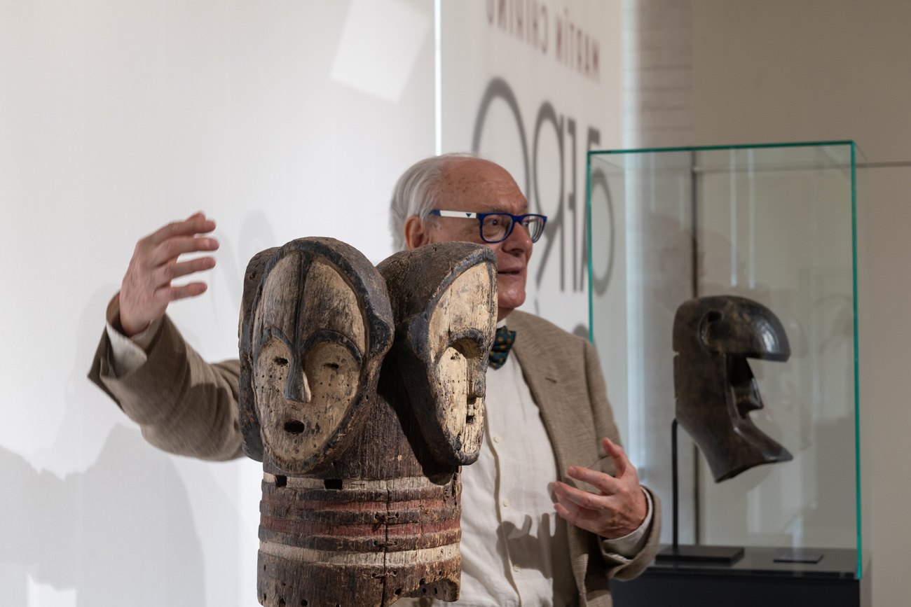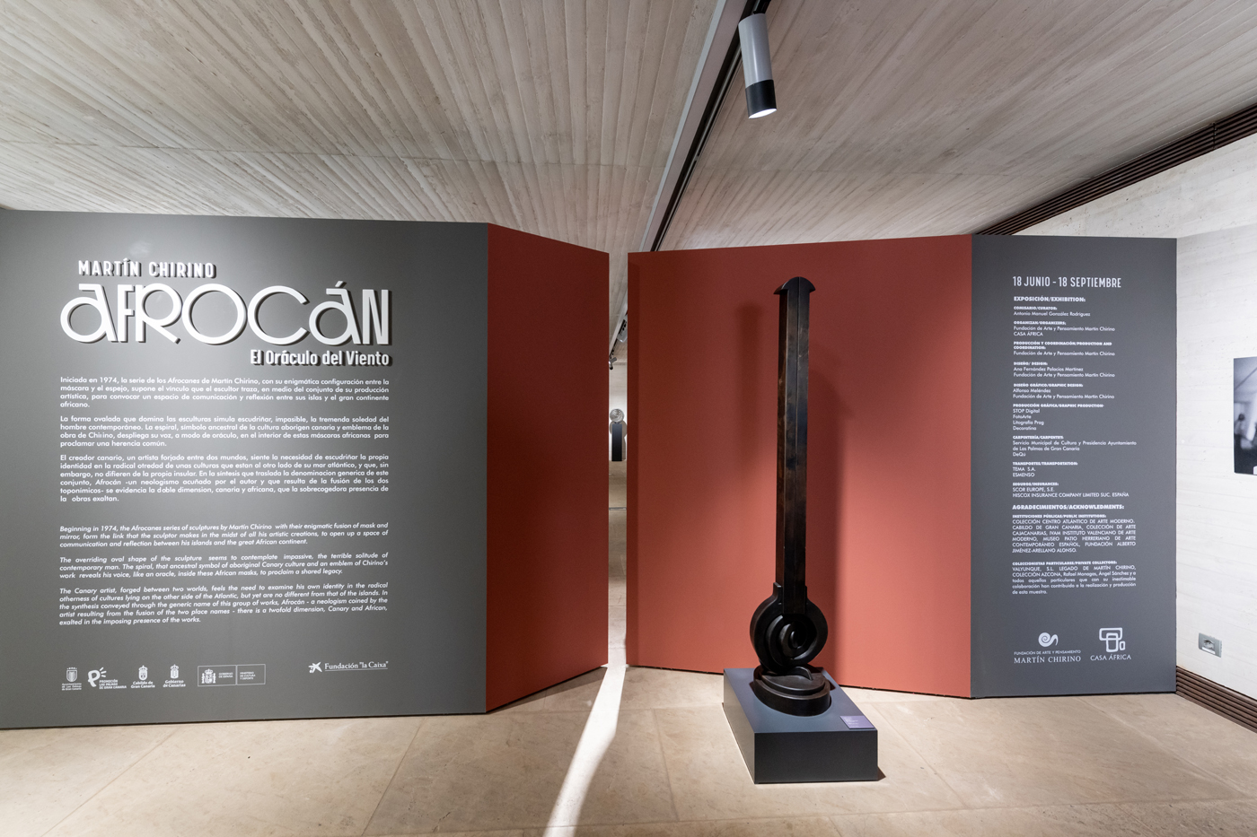 La muestra Martín Chirino. Afrocán. El oráculo del viento, también comisariada por González y realizada con la colaboración de Fundación ”la Caixa”, incluye esculturas, dibujos, fotografías, objetos de arte africanos y obras internacionales que contextualizan estos trabajos de Chirino y todo tipo de documentos que aluden al periodo en que la dictadura franquista languidecía en España.
