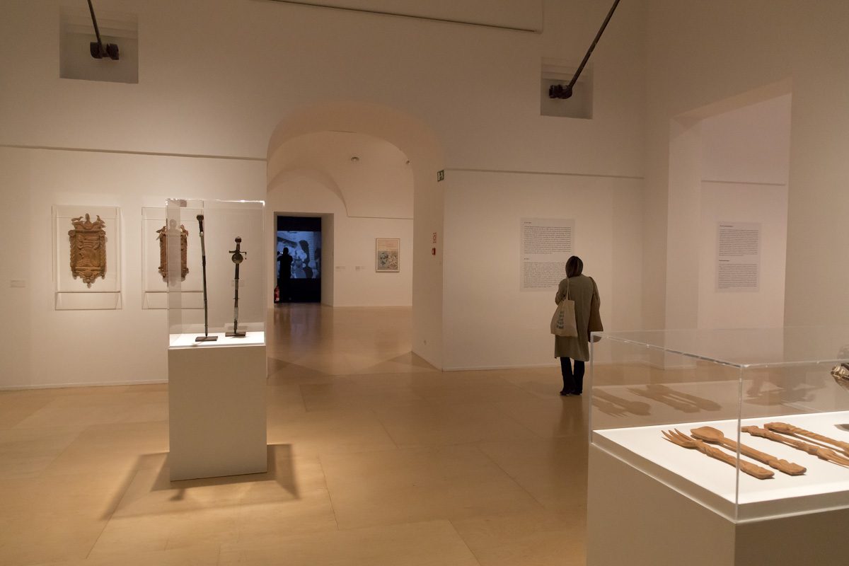 La muestra ocupa 11 salas de la tercera planta del edificio Sabatini e incluye una amplia variedad de obras de arte de surrealistas como Dalí o Man Ray o de artistas como Joan Miró y Antonin Artaud; de impulsores del art brut como Jean Dubuffet, Karel Appel, Henri Michaux, Léon Schwarz-Abrys o José García Tella; creaciones de pacientes como Marguerite Sirvins o Auguste Forestier; filmes y vídeos de Mario Ruspoli o Angela Melitopoulos; fotografías de Agustí Centelles, Alec Wainman o Jacques Matarasso, así como abundante material documental inédito procedente de instituciones psiquiátricas que puede verse por primera vez en un museo. Además, en diversas salas se proyectan breves extractos de una entrevista a Tosquelles realizada en 1986 conducida por Jean-Claude Polack y Danielle Sivadon y filmada por François Pain en la que se revela su carácter heterodoxo.