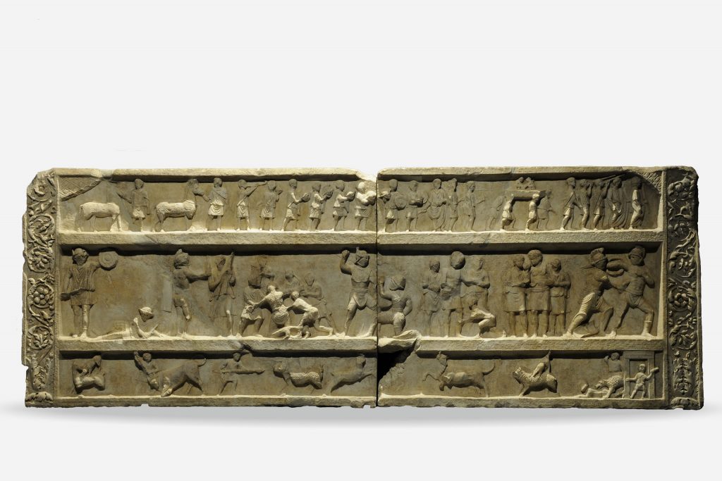 Realizada en colaboración con el Coliseo de Roma, la muestra reúne 140 piezas originales procedentes de ocho instituciones italianas: Museo Cívico de Rieti, el Museo Antiquario Alda Levi de Milán, el Museo Arqueológico Nacional de Nápoles, el Museo de las Termas de Diocleciano de Roma, el Museo Arqueológico Nacional de Aquileia, el Parque Arqueológico de Paestum, el Parque Arqueológico del Coliseo de Roma y la Sopraintendencia de Beni Culturali de Bolonia.