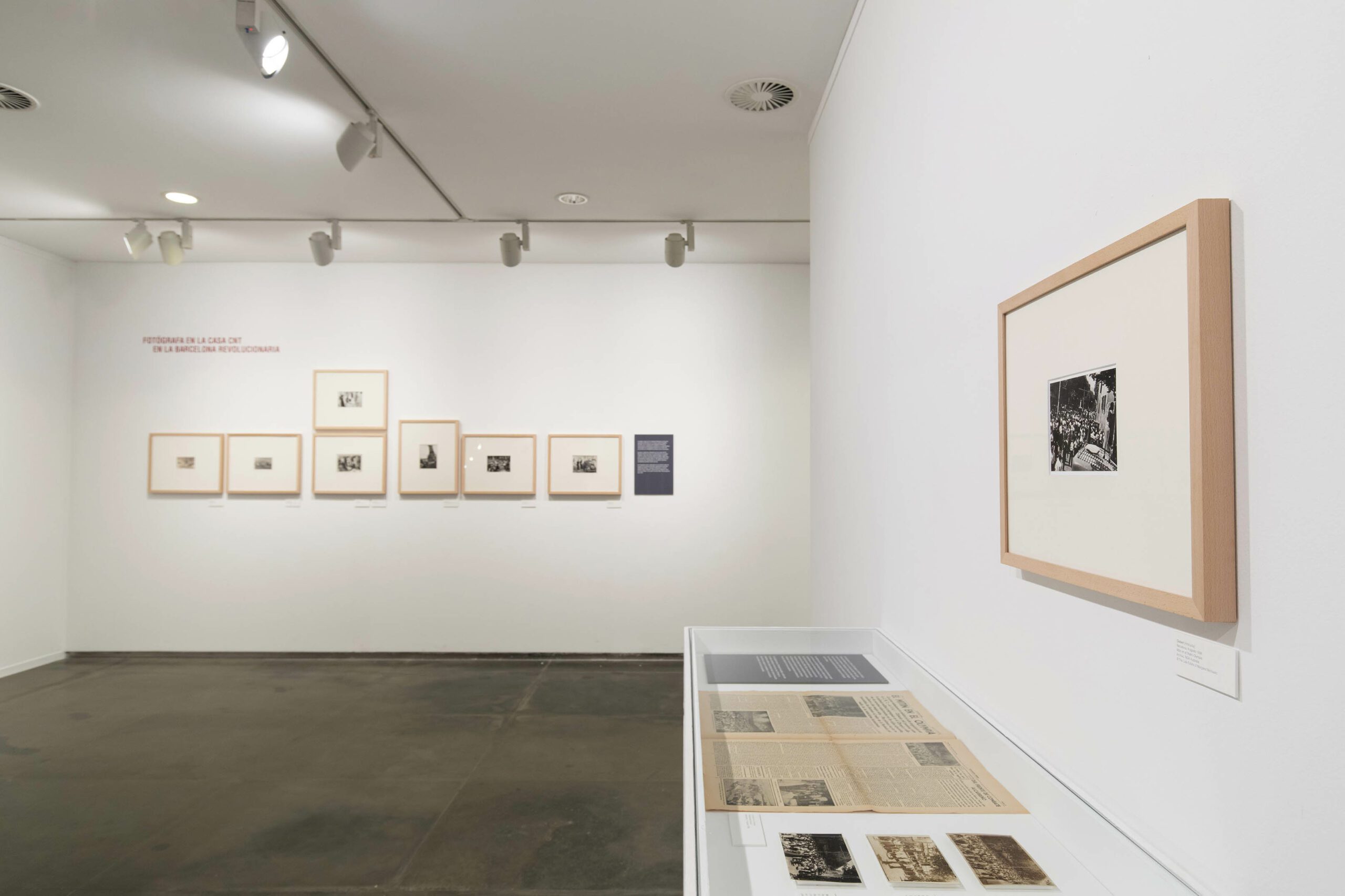 Comienza con el estallido de la Guerra Civil y de la revolución social en Barcelona en una sección dedicada a Margaret Michaelis, con fotografías de Barcelona, Huesca y Valencia. La retaguardia del 36, desde la mirada de Michaelis, da paso a la sección dedicada a Kati Horna, con fotografías de Barcelona y el Frente de Aragón correspondientes a sus seis meses de trabajo en la capital catalana hasta su traslado a Valencia en julio de 1937. Un viaje visual que Almudena Rubio refuerza con documentos inéditos y prensa de época que ayudan a entender el trabajo y la trayectoria de estas dos fotorreporteras durante la contienda.