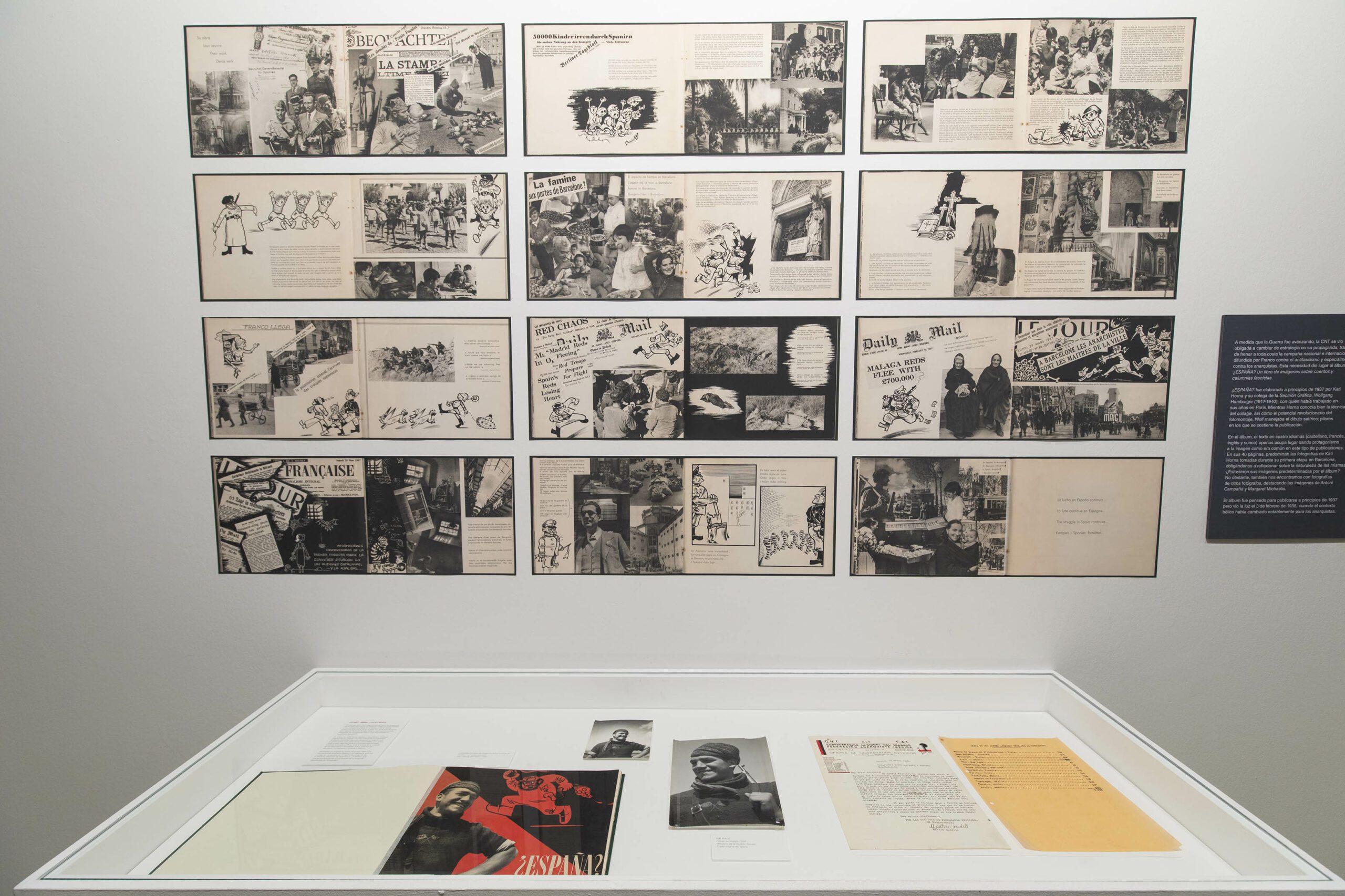 La muestra incluye más de 200 fotografías (originales de época y copias modernas) y proyecta por primera vez una película de 35 mm localizada junto al resto del material en Ámsterdam. También se exhibe una de las 48 cajas de madera en las que fueron almacenados los archivos de la CNT-FAI para enviarse a la ciudad holandesa antes de acabar la guerra, en ese empeño de los anarquistas por salvaguardar su memoria.
