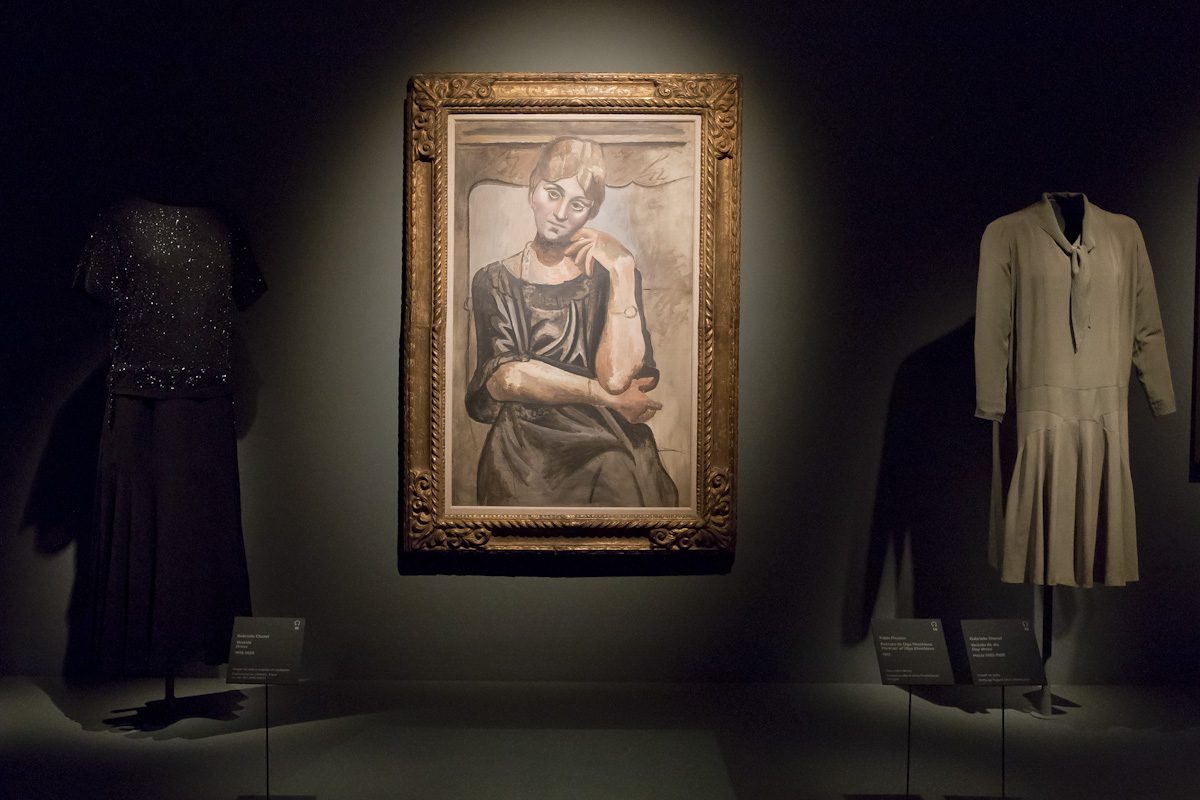 2. Olga Picasso está dedicado a los numerosos retratos que Picasso realizó de su primera mujer, la bailarina rusa Olga Khokhlova, devota clienta de Chanel; junto a ellos, algunos vestidos de este periodo inicial de la diseñadora, de los que se conservan escasos ejemplos.