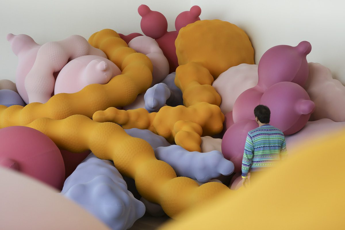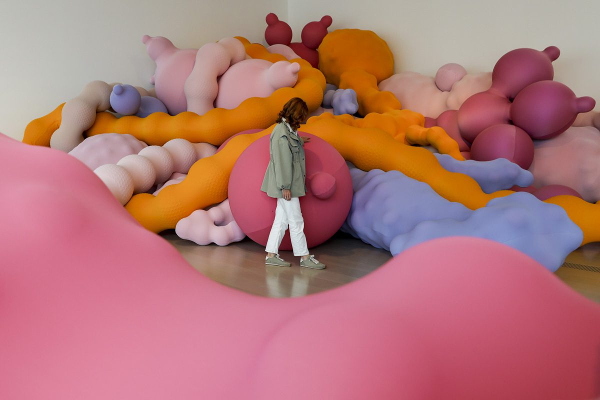 Los vínculos entre sus obras crean un diálogo complejo, y a menudo inesperado, en torno al deseo, lo corporal y lo lúdico, pero también lo amorfo, lo atrevido y lo perturbador. Este ‘entrelazado’ de obras se ha concebido como un organismo vivo, a gran escala, que se adueña del espectacular espacio arquitectónico del Centro en un crecimiento incontrolado, generando espacios de experiencias colectivas.