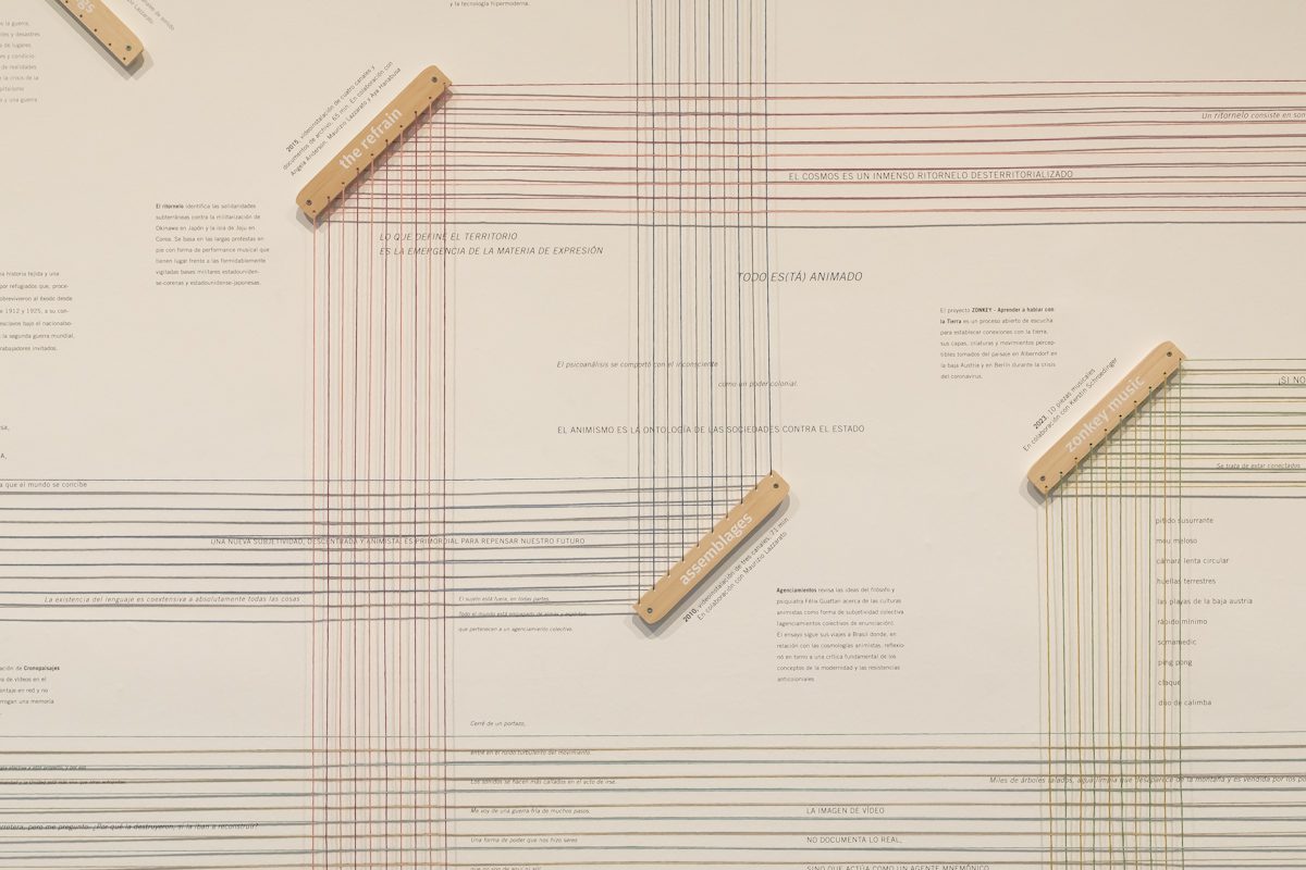 Para Melitopoulos, el vídeo imita el funcionamiento de la percepción y la memoria, lo que permite estudiar los procesos de formación de la subjetividad, intentando abrirla con sus trabajos a nuevas formas alejadas de identificaciones capitalistas, coloniales y patriarcales. A esta peculiar manera de trabajar con el espacio, el sonido y la imagen en movimiento la denomina Cine(so)matrix, una forma de cine experimental que da título a esta exposición.