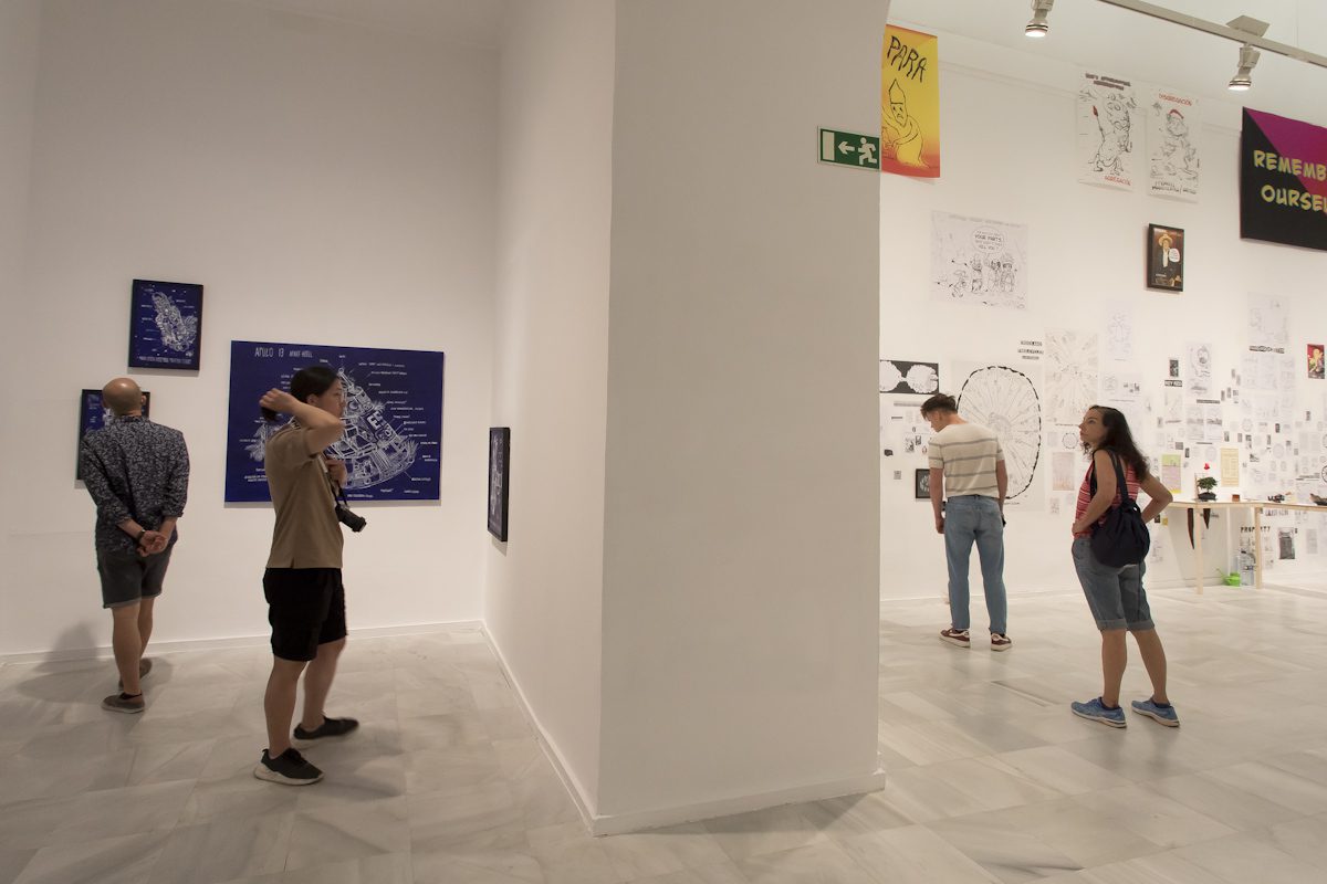 La exposición se abre con dos espacios donde se ponen en diálogo varias obras que parecen representar máquinas o que evocan de alguna manera imaginarios mecánicos. Es el caso de Tropical Space Proyectos, unos particulares croquis del salvadoreño Simón Vega. A modo de parodia sobre la carrera espacial como la última forma de colonialismo, estos diseños condensan una crítica de la brecha tecnológica entre el primer y el tercer mundo.