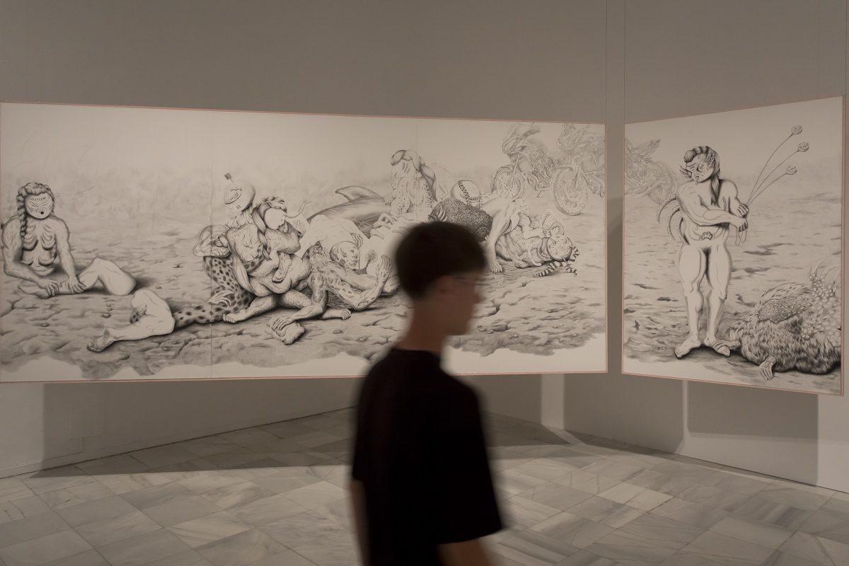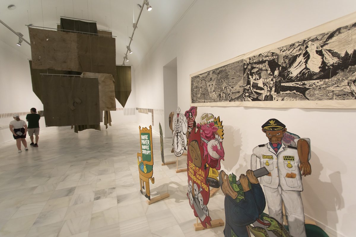 Frente a esta condición “molar” de las lógicas imperialistas o la burocratización de la vida pública surgen multitud de revoluciones “moleculares” como tentativas de acción que, desde lo micropolítico, plantean líneas de fuga hacia modos alternativos de organizar el común. Las conexiones entre las ideologías nacionalistas, el militarismo y la memoria colonial, así como el extractivismo, las migraciones forzosas y las políticas fronterizas, son algunas de las cuestiones vehiculares en esta exposición, abordadas explícitamente por este primer grupo de obras.