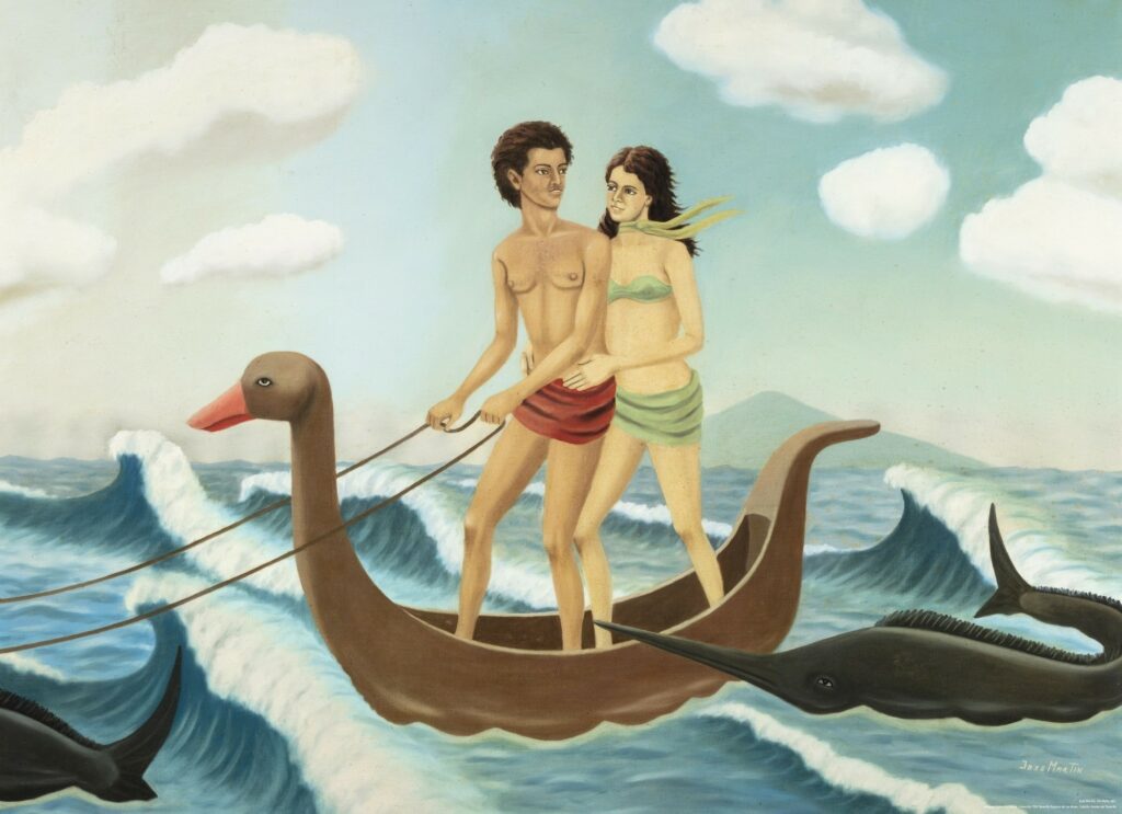 Las obras que conforman esta exposición colectiva son las pinturas de Sofía Bassi Cazando Estrellas (1965), Cascada (1965), Operación Salvamento, ELC (1969), Samotracia, ELC (1969), La Quijote, ELC (1969), La Quijotita, ELC (1969), La Quimera del Quijote, ELC (1969) Sofía Bassi Eclosión, ELC (1968), Resurrección, ELC (1971), La Diosa Emplumada (1967), Más vale encender una luz, que maldecir las tinieblas (Buda) (1994), En su torre solitaria (1994), Árbol (1995), El Traspaso (1994) y La dama que se aleja, ELC (1970). También cuenta con las pinturas de José Martín El entierro (ca.1978), Ataque en Nueva York (ca.1980) y Entierro de la sardina (1979).