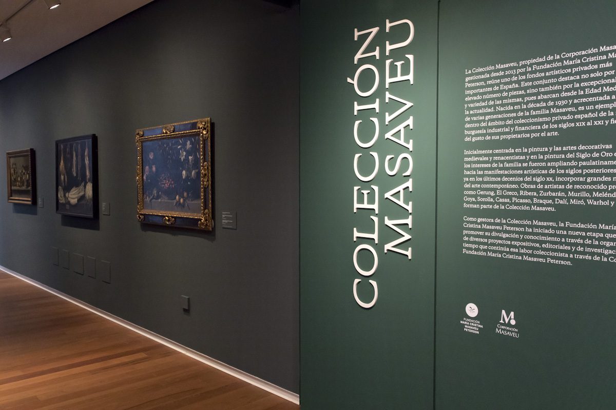La mayoría de las obras expuestas pertenece a la Colección Masaveu y se completa con obras de la Colección Fundación María Cristina Masaveu Peterson y de la Colección Pedro Masaveu Peterson, estas últimas procedentes del Museo de Bellas Artes de Asturias. La colección personal de Pedro Masaveu Peterson, integrada por 410 obras, fue entregada al Principado de Asturias mediante la vía de la dación en 1994, un año después de su fallecimiento, por deseo expreso de María Cristina Masaveu Peterson, quien quiso de este modo honrar la figura de su hermano como coleccionista. Estas piezas se pueden contemplar en el museo asturiano, considerado desde entonces uno de los más relevantes de España. Por ello, para Ángel Aterido «esta exposición supone un afortunado y único reencuentro de obras que, en muchos casos, fueron adquiridas por Pedro Masaveu Peterson para formar grupos interconectados entre ambas colecciones».