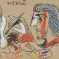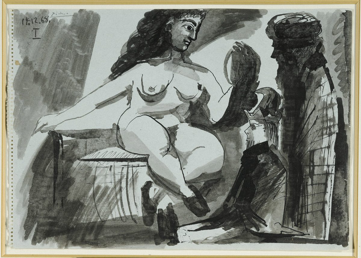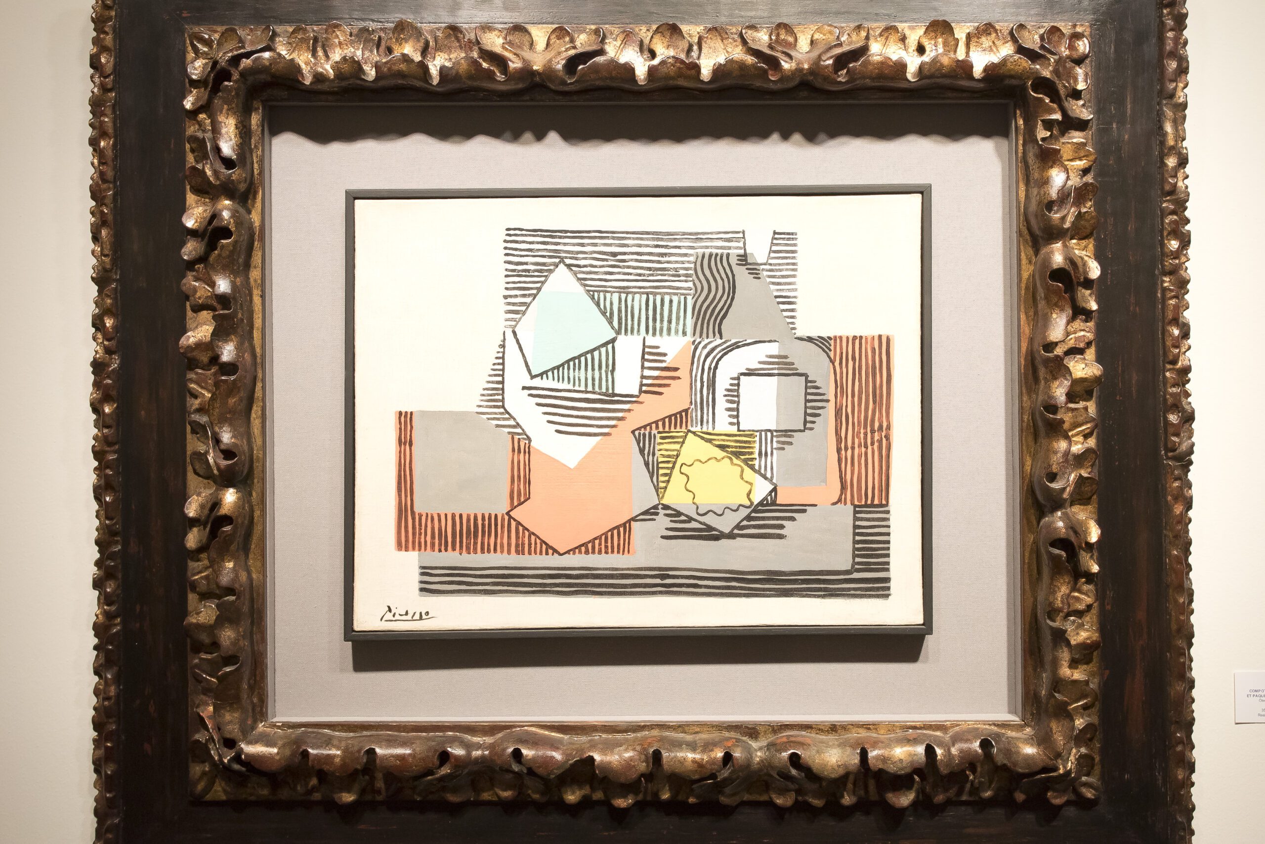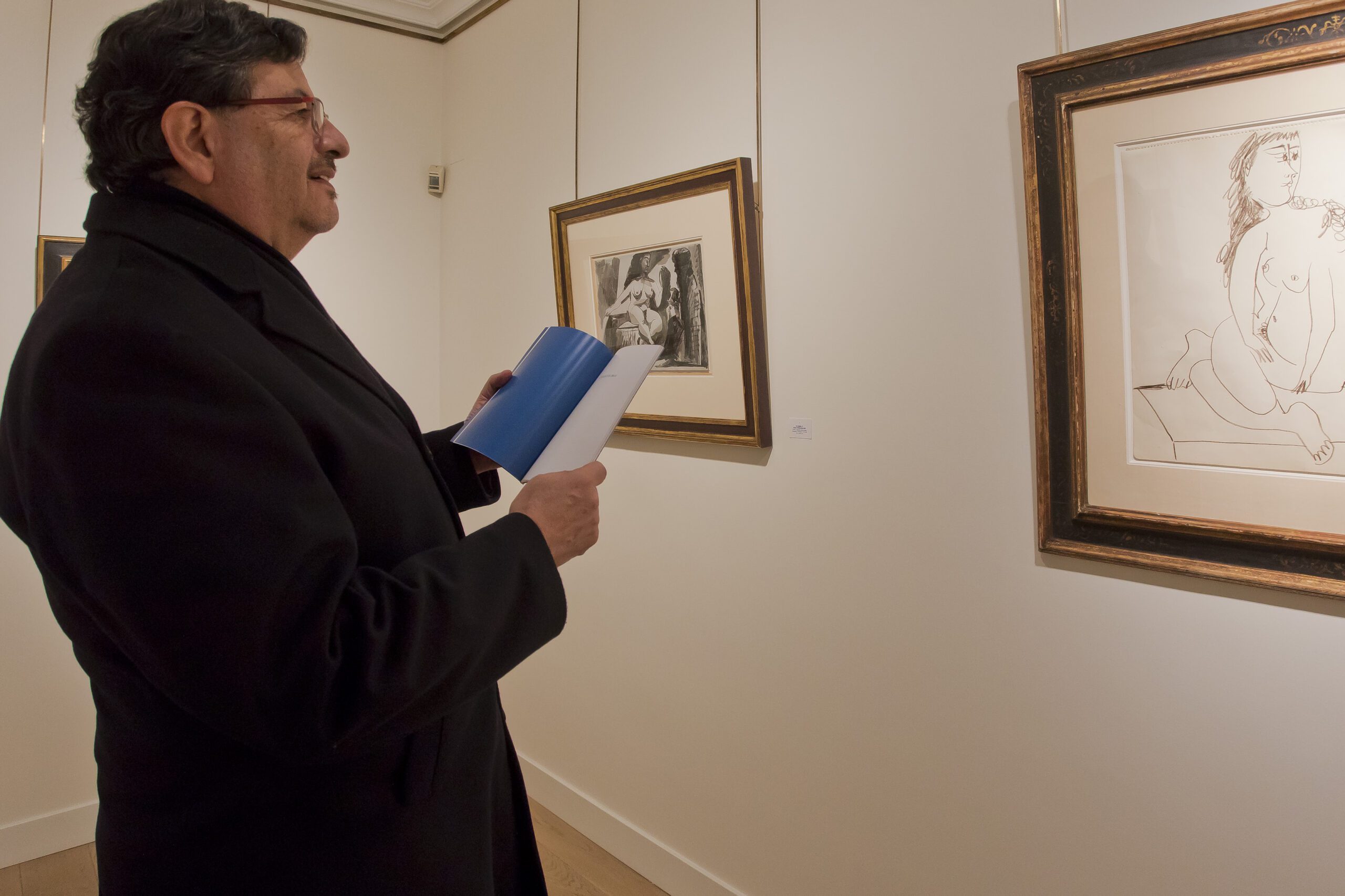 Entre las obras expuestas destacan un bodegón al óleo de la etapa cubista sintética, de 1922, y una escultura cerámica (pieza única) de 1956. El grueso de la muestra lo configuran 10 dibujos de temáticas diversas, entre los que sobresalen Deux femmes nues, fechado en 1966; Una cabeza de mosquetero, de 1967, y un dibujo a doble cara con el motivo del pintor y su modelo, de 1970. Este tema es recurrente a lo largo de la producción de Picasso, en el que la complicidad de ambos la protagoniza la mirada, el ojo del pintor, o de la pintora, como en el curioso dibujo Mujer pintora y modelo, fechado en 1954.
