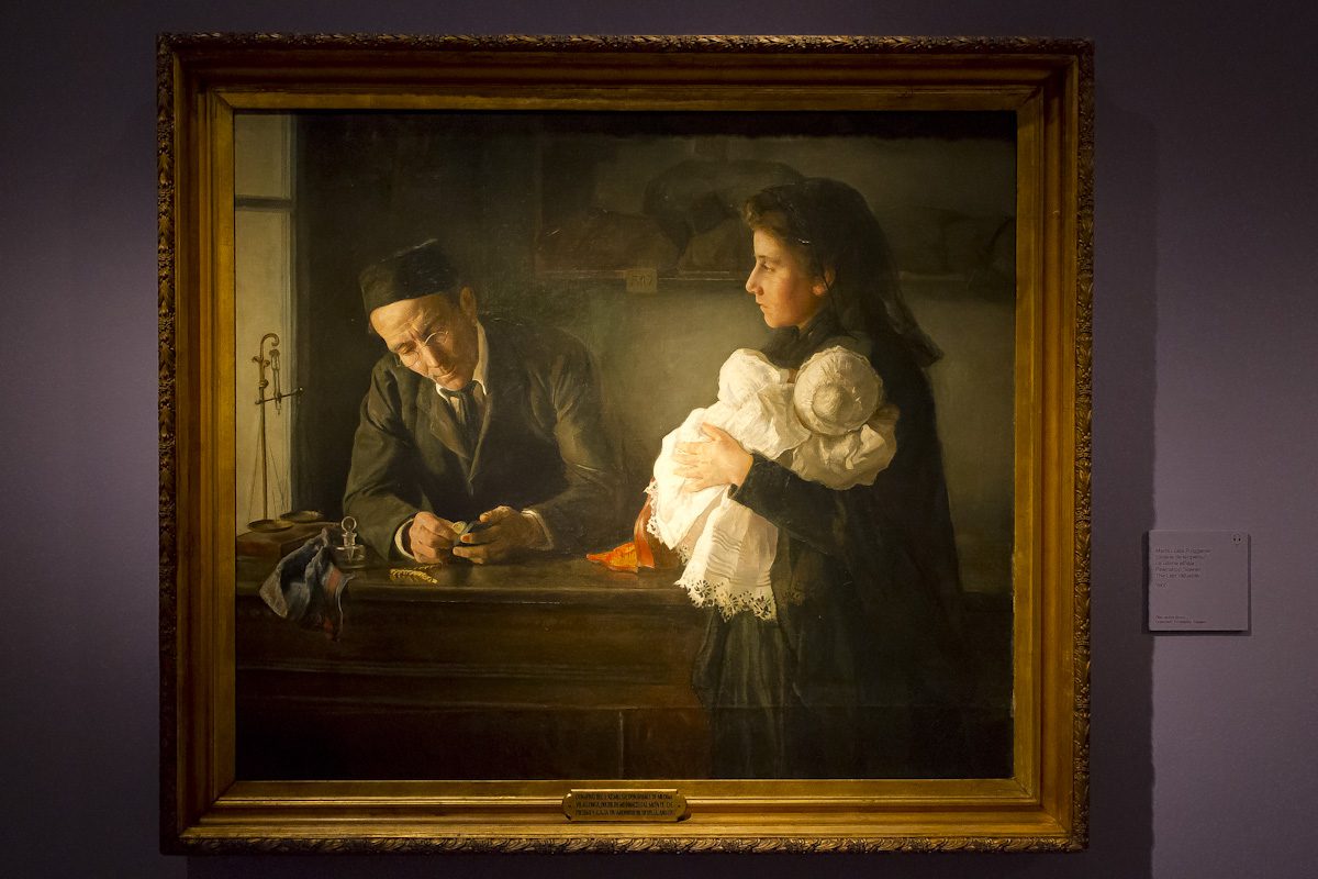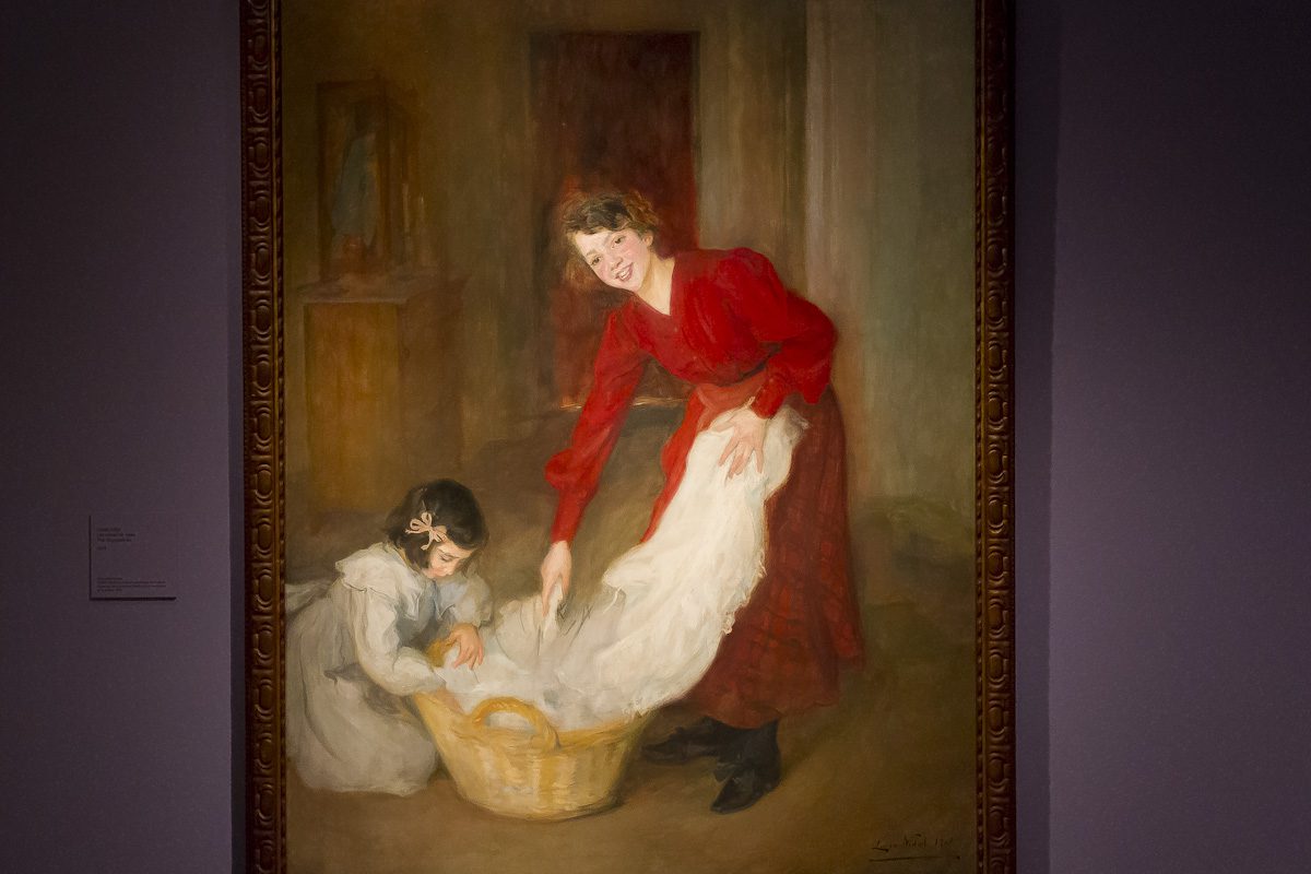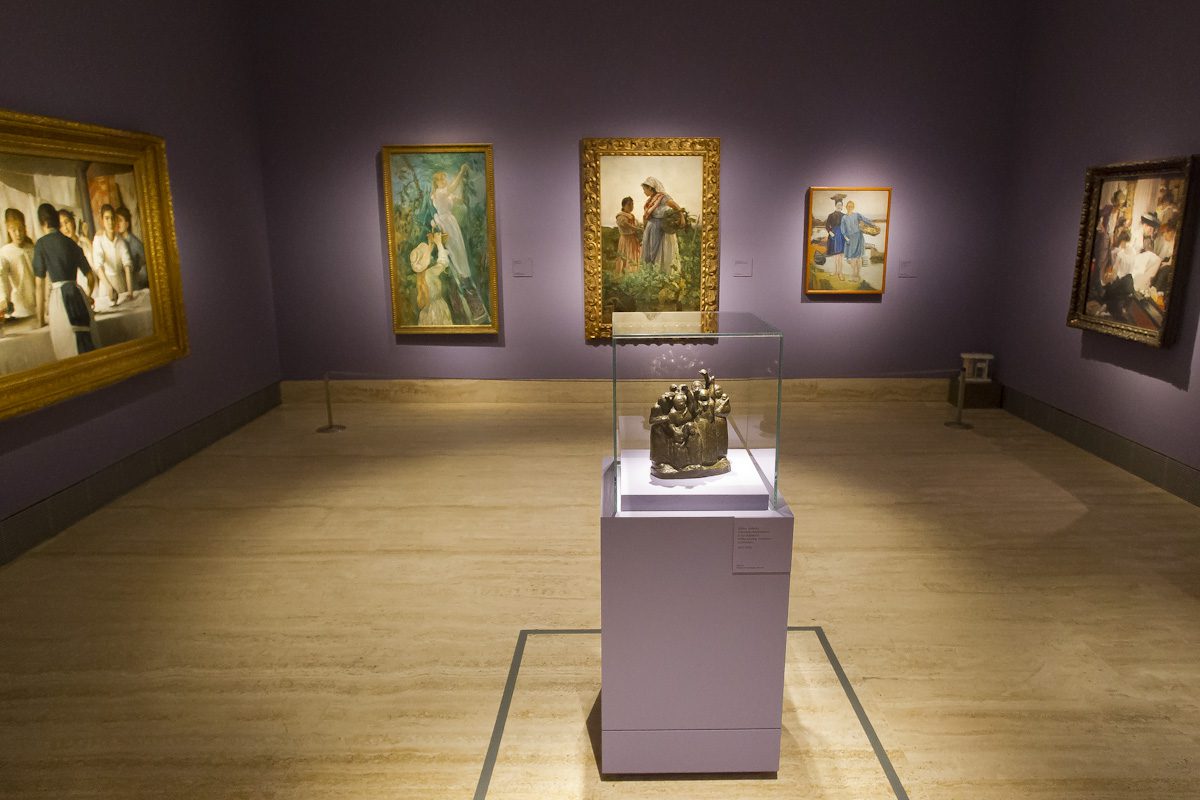 5. Trabajos, cuidados. Excluidas de las Academias, en París, mujeres procedentes de toda Europa y América estudiaban en escuelas privadas segregadas y, con el telón de fondo de las reivindicaciones feministas, fundan las primeras asociaciones de artistas mujeres y el Pabellón de la Mujer en la Exposición Colombina Mundial de Chicago, en 1893. En este capítulo se reúnen ejemplos del realismo y del idealismo romántico y político de las artistas, con sus representaciones de mujeres trabajadoras, tanto en tareas tradicionales como en diversos oficios y profesiones, abarcando el periodo de 1860 a las primeras décadas del siglo XX.