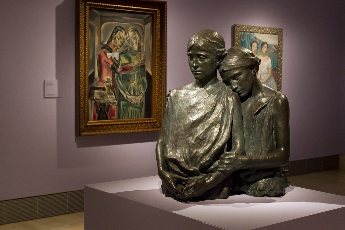 8. Emancipadas. Entre 1900 y 1937, mientras se consigue el sufragio femenino, las artistas más avanzadas del momento continúan abordando iconografías que subrayan la complicidad entre mujeres y sus aportaciones distintivas en los nuevos lenguajes vanguardistas. Fueron muchas las que participaron activamente en los movimientos de vanguardia, artistas reconocidas que triunfaron en vida y que fueron modelo de fuerza, compromiso, vitalidad, creatividad e independencia, pero que, tras su muerte o a raíz de acontecimientos como la Segunda Guerra Mundial o, en el caso de España, la dictadura, serían eliminadas de la historia y de los museos.