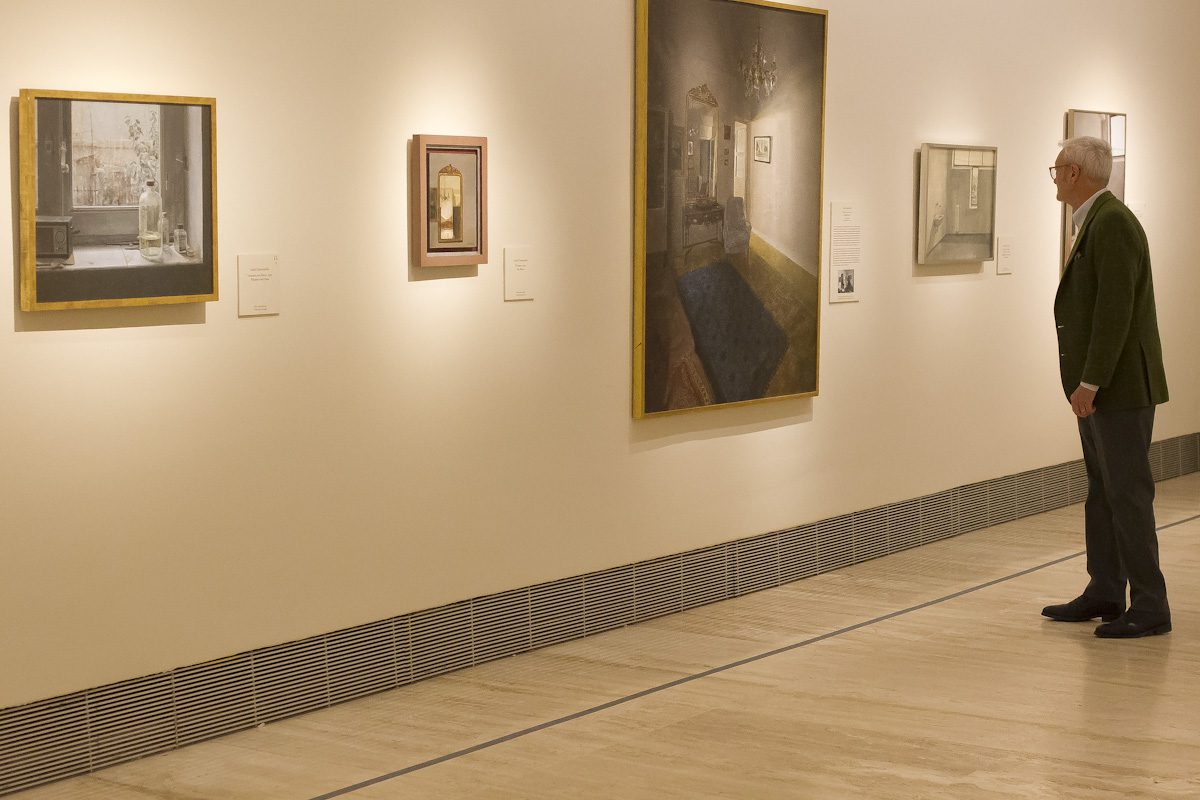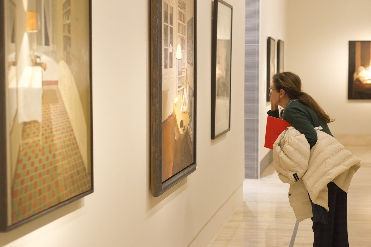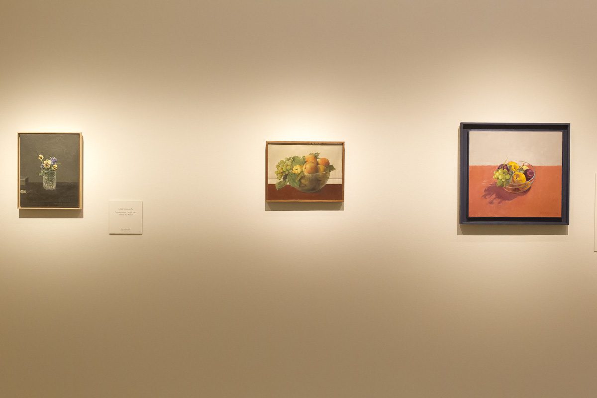 La selección de obras abarca las seis décadas en las que pintó, desde La lamparilla (1956), la más antigua que se conserva, hasta Bodegón Siena (2017), la última que entregó a su galerista poco antes de fallecer, y se presentan a través de seis secciones temáticas y cronológicas en las que se suceden bodegones, interiores, paisajes y jardines.