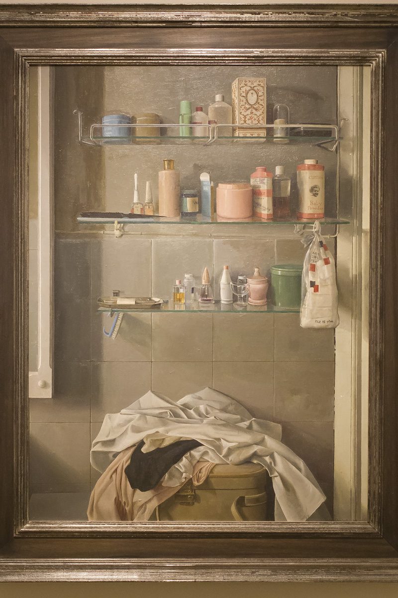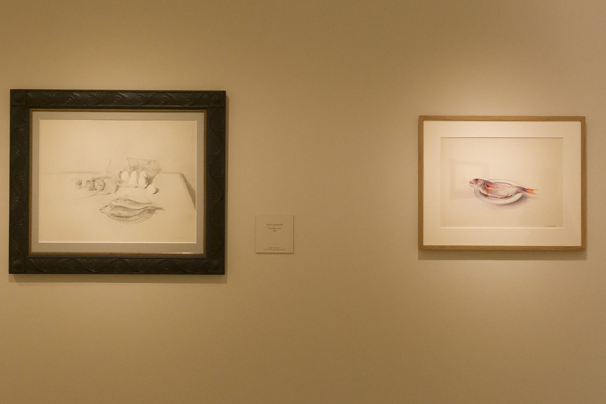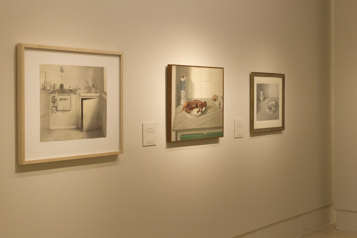 Uno de sus motivos favoritos son los vasos de agua de la marca Duralex, muy populares en la década de 1960. A lo largo de los años realiza más de cincuenta versiones en pequeño formato, con óleo o lápiz, 12 de las cuales se incluyen en la exposición, desde Pensamientos y reloj (1964) a Bodegón con lirios (1995).