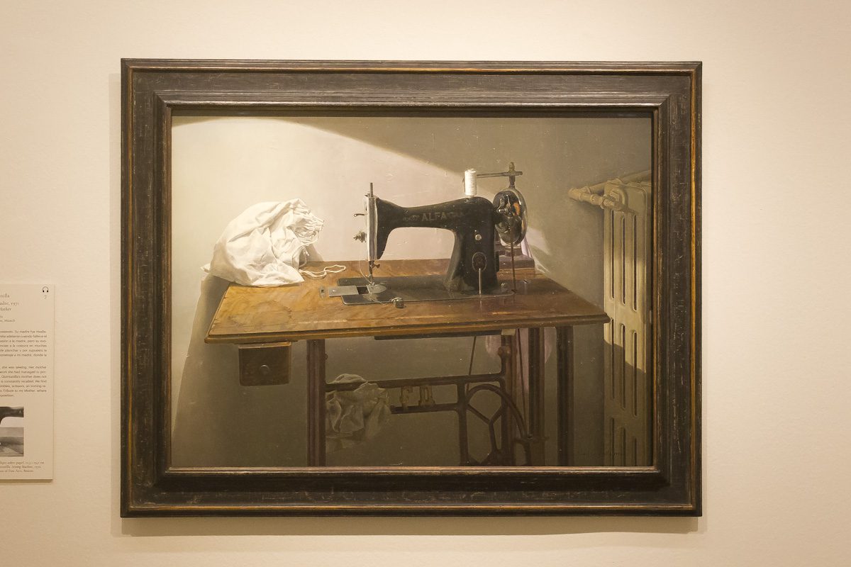 La costura y el recuerdo a la profesión de su madre también están presentes en algunas ocasiones de forma implícita, a través de objetos como la máquina de coser, las tijeras y los dedales, como en Bodegón del periódico (2005), o explícita, como en Homenaje a mi madre (1971). Para presentar sus naturalezas muertas recurre habitualmente a la mesa como soporte, aunque también utiliza el alféizar de la ventana (Vaso, 1969), la encimera de la cocina (Cocina I, 1970) o la nevera (Pensamientos sobre la nevera, 1971-1972).