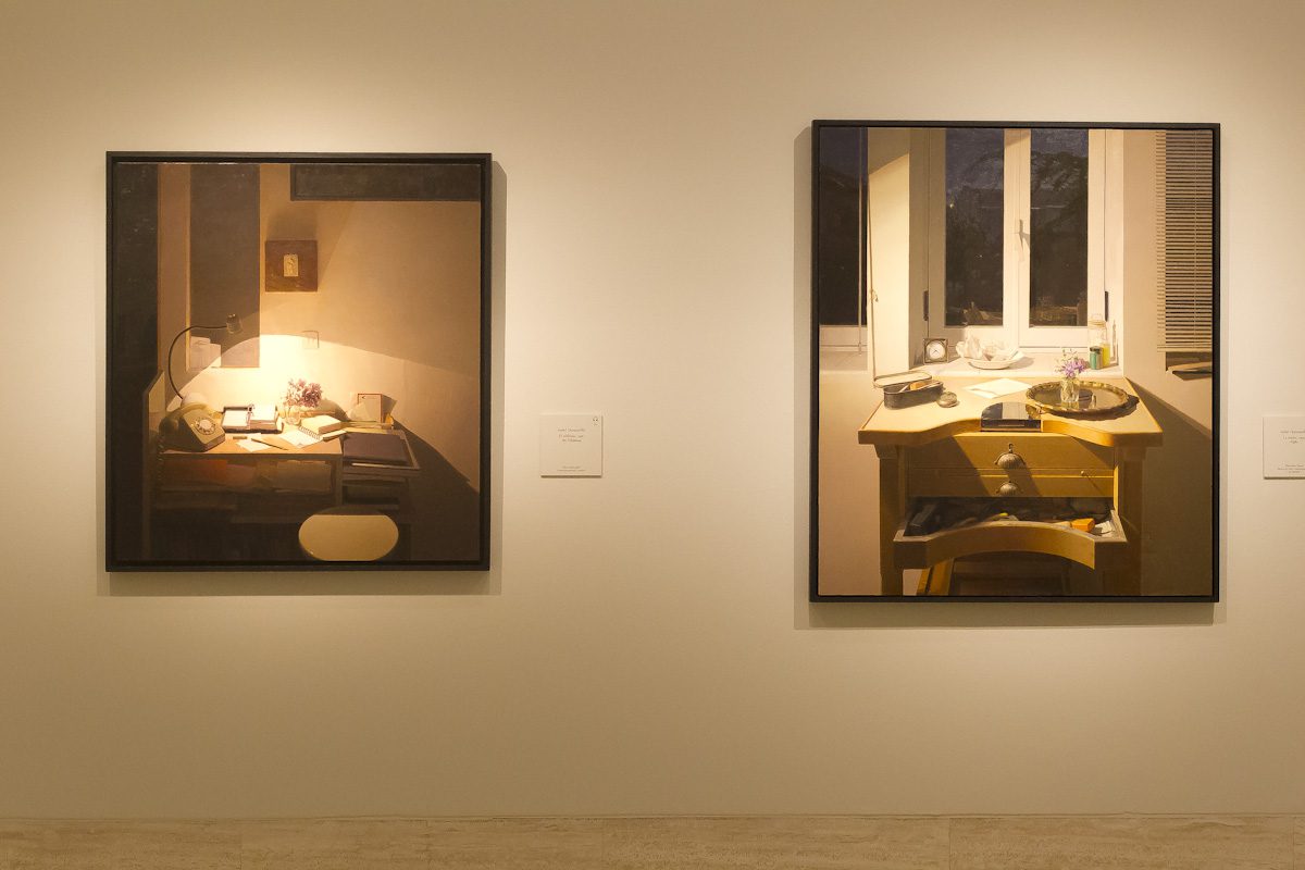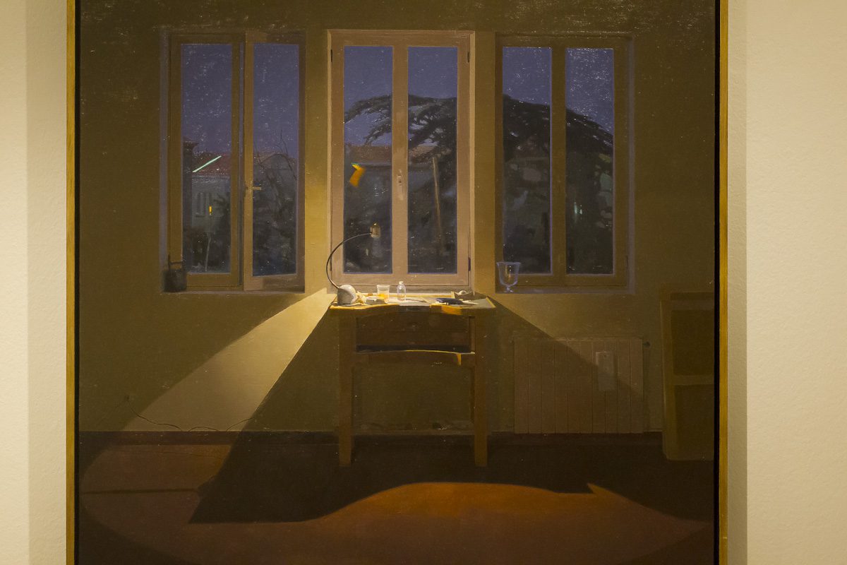 El cambio de luz también le sirve para convertir el mismo motivo en otra pintura. En Atardecer en el estudio (1975) y Nocturno (1988-1989) retrata un ventanal y una mesa con 15 años de diferencia. Aunque varían algunos elementos, lo que más los separa es la luz: natural en una obra, artificial en la otra. La mesa perteneció a su suegro, que era orfebre, y a ella vuelve en 1995 para darle todo el protagonismo en otra pintura nocturna, La noche (1995).