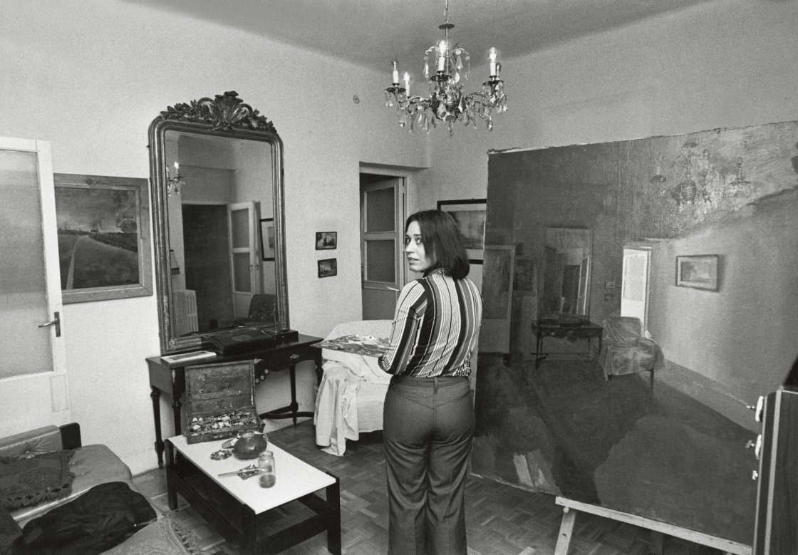 A pesar de estar vacíos se puede intuir quién habita estos espacios por los elementos elegidos por la artista, como sucede en Interior de noche (rincón de taller) (1971), un dibujo en el que no solo muestra sus herramientas de trabajo y las de su marido, sino también una hamaca de bebé, en alusión a su hijo Francesco, o La habitación de costura (1974), otro recuerdo a su madre.