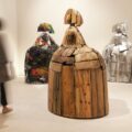 Sus esculturas, independientemente de su tamaño, están impregnadas de ligereza, que las hace flotar. La exposición ofrece una gran variedad de materiales, colores y formas que actúan a modo de tocados en las cabezas, siempre de forma simétrica. Tal es el caso de, entre otras, Cabeza con cristales verdes, Cabeza de Mariposas Azules, Círculos en Ámbar, Cabeza con Cerámica y Cabeza con Vidriera XXI.