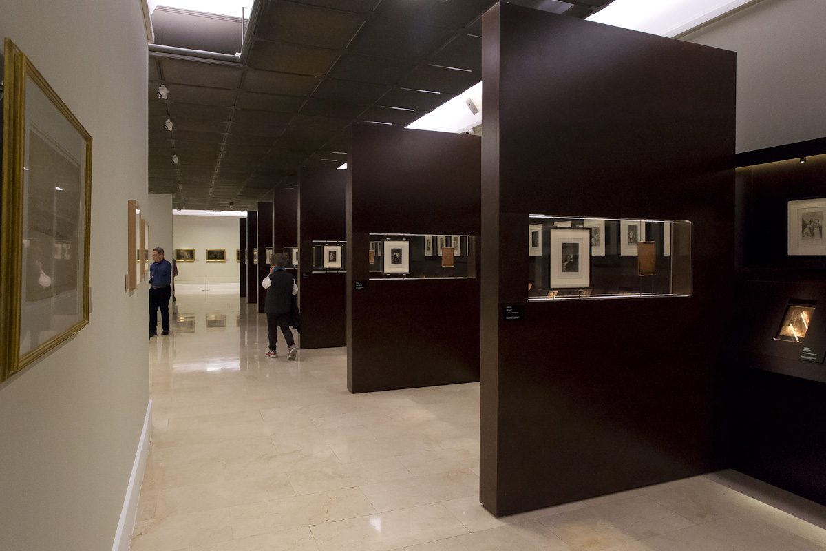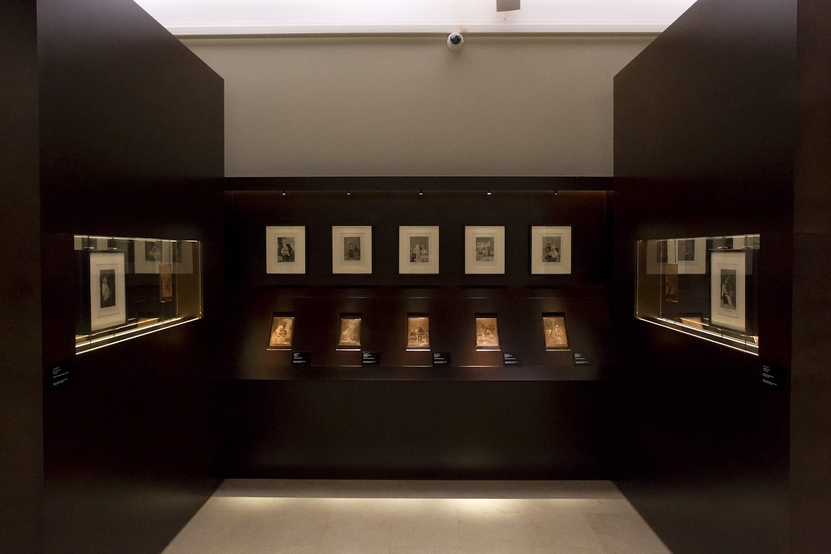 Las que no se exponen son las grabadas con anterioridad a los Caprichos, es decir: 13 aguafuertes sobre pinturas de Velázquez, más El agarrotado y el San Francisco de Paula, en total 15, que sumadas a las 213 de la exposición, dan la cifra definitiva de 228 que se conservan en la Calcografía Nacional. Estas últimas 15 rotarán con las 18 de los Disparates cuando termine la exposición. Quedando las salas de Calcografía incorporadas a la visita habitual al espectacular Museo de la Academia.