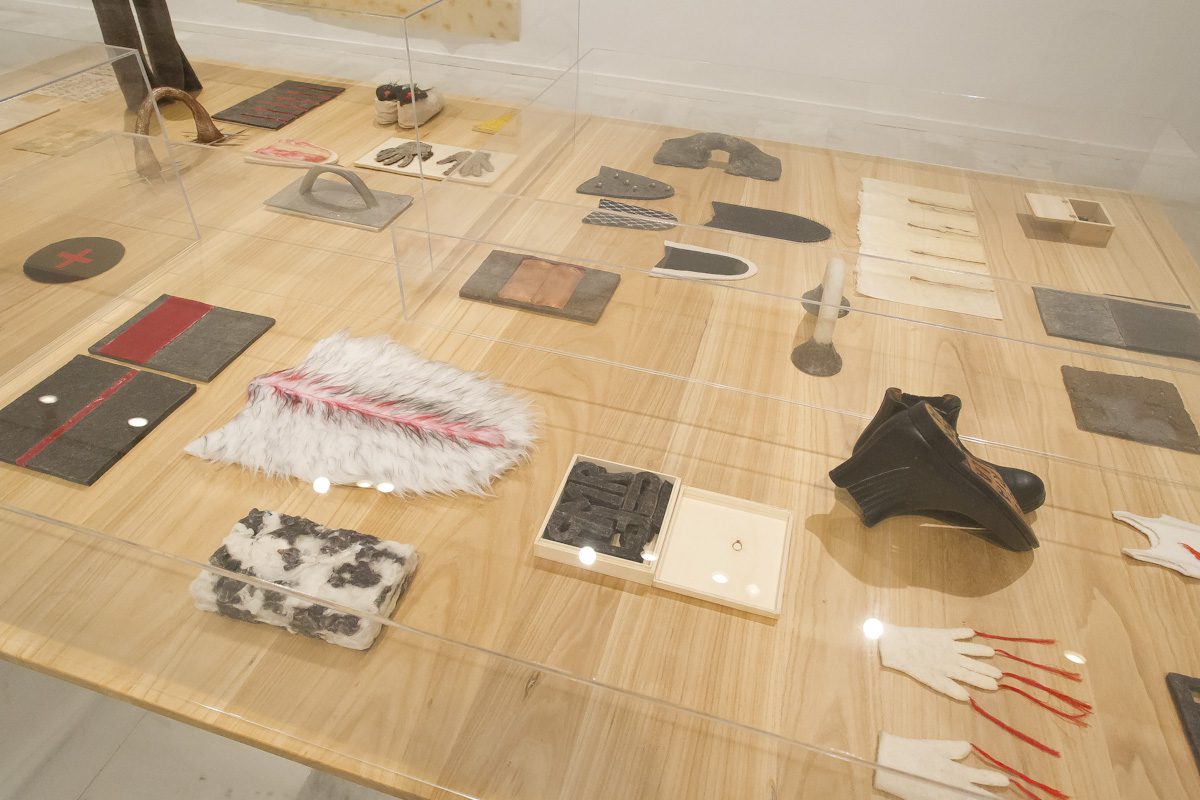 Con el tiempo, además de la literalidad de los materiales, introduce la materialidad del lenguaje como elemento conformador que deja restos. Van apareciendo en su trabajo fragmentos del cuerpo u objetos que funcionan como prótesis de entidad ambigua.