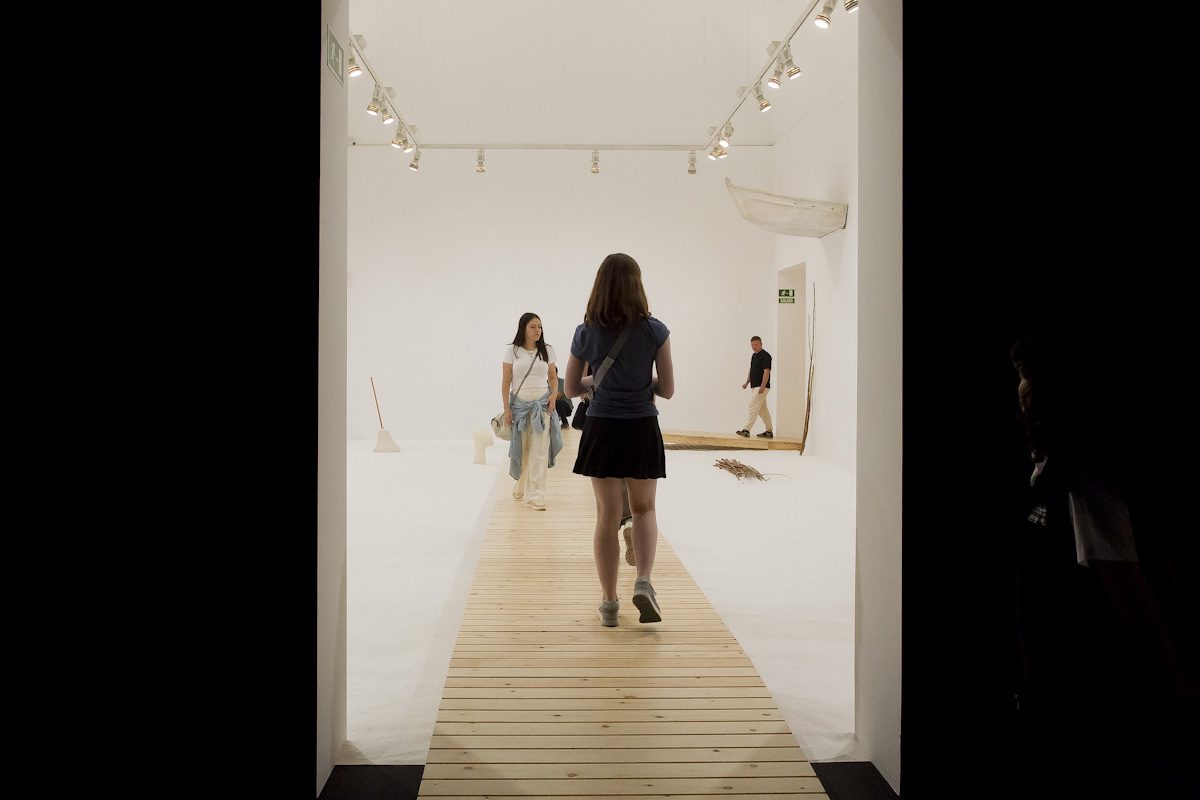La instalación A Farewell to Isaac Newton, Un adiós a Isaac Newton (1994/2016), ubicada en la segunda sala, hace alusión a la ruptura de la visión mecanicista del mundo que propugnaba el científico. Una habitación blanca con el suelo cubierto por arena de mármol atravesado por una pasarela que invita a un viaje solitario. Con ella, la artista se pregunta cómo aprender a ver de nuevo en un mundo donde la sobreexposición a imágenes nos introduce en una nueva ceguera. “Es un escenario sin actores, un paisaje desplegado en el interior de una sala. Un lugar para un paseo solitario. Un apunte para una meteorología de lo blanco, que envuelve al espectador por todas partes, a punto de producirle la ceguera que produce la nieve”, explica.