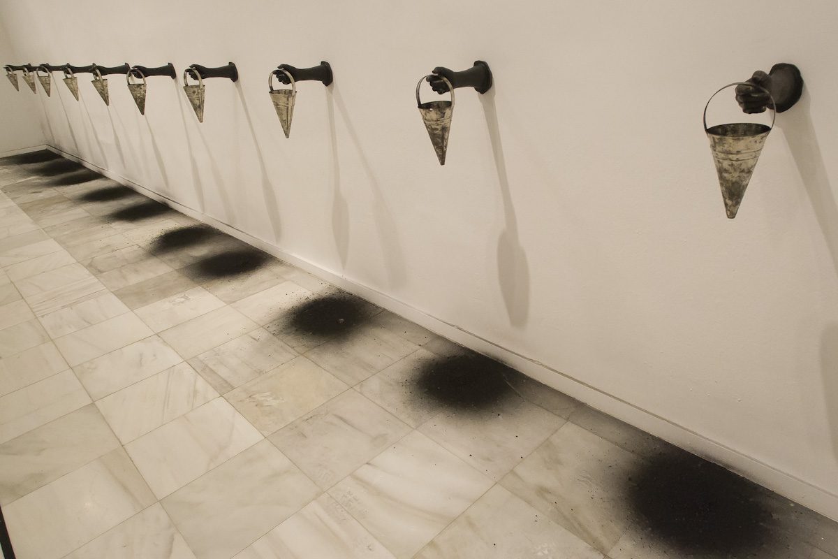 Su preocupación por la historia y el papel de las mujeres se refleja también en su obra. El fondo indiferenciado de la consciencia (2018-19), Camisa de invierno (1993) o Endless Task, Tarea infinita (1990), en la que 10 manos de bronce sujetan un embudo de metal por el que cae cisco de carbón. Con ellas, Eva Lootz expresa las preguntas que le surgen en torno a las mujeres, la subjetividad o la femineidad.