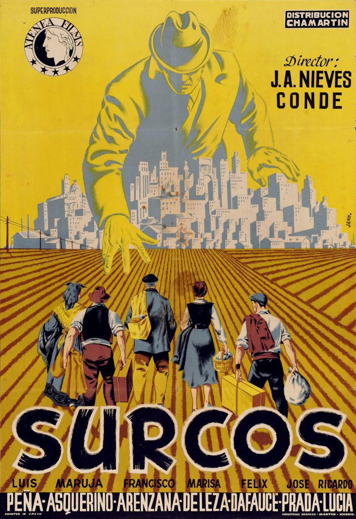 Un caso excepcional sería su cartel para la película Surcos (1951), de José Antonio Nieves Conde, un dibujo simbólico que se utilizó para la distribución de la película en el extranjero y que quedó finalista en el certamen de carteles del festival de Cannes de 1952. El aumento de la producción hizo que abriera su propio estudio y contratara a colaboradores como Ramón Padilla o José Montalbán. El estudio de Jano también se ocupaba de pintar los carteles de los cines de la Gran Vía. Carmen Asenjo dijo de él que fue «el creador del paisaje cinematográfico de la Gran Vía».