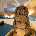 La muestra incluye piezas como una placa granítica encontrada en la ermita de las torres del Oeste de Catoira, donde se puede leer una inscripción de protección contra las incursiones vikingas o un pequeño fragmento de una de las muchas vieiras encontradas en la zona portuaria de la ciudad sueca de Sigtuna, posiblemente relacionadas con peregrinaciones a Santiago de Compostela durante el siglo XII.