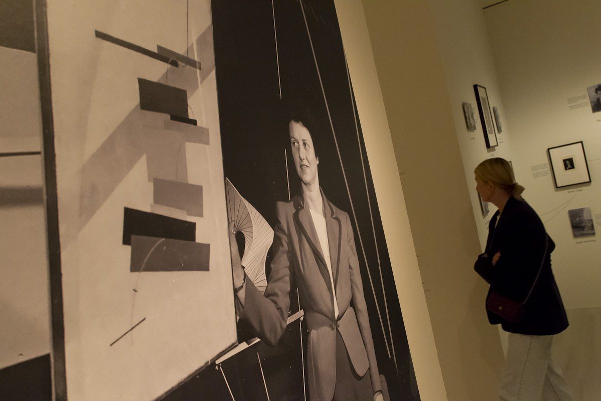Berenice Abbott [atribuida a] Peggy Guggenheim posa en su galería neoyorquina Art of This Century, 22 de octubre de 1942. Copia digital. © 2024 Estate of Berenice Abbott. © AP Photo / Tom Fitzsimmons.