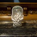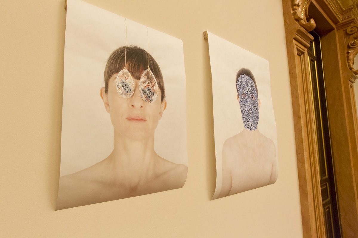 A lo largo de toda la muestra, la artista recurre a elementos que ya estaban presentes en sus trabajos anteriores, pero que reinterpreta bajo una luz nueva, más íntima y personal. Las perlas, los velos protectores, los cristales azules y los exvotos que cuelgan de su collar-talismán reaparecen aquí como símbolos de protección y transformación. Córdoba mezcla lo ritual con lo autobiográfico, invitando al espectador a unirse a este viaje donde el cuerpo materno se convierte en un espacio de creación y renacimiento, pero también de sacrificio.