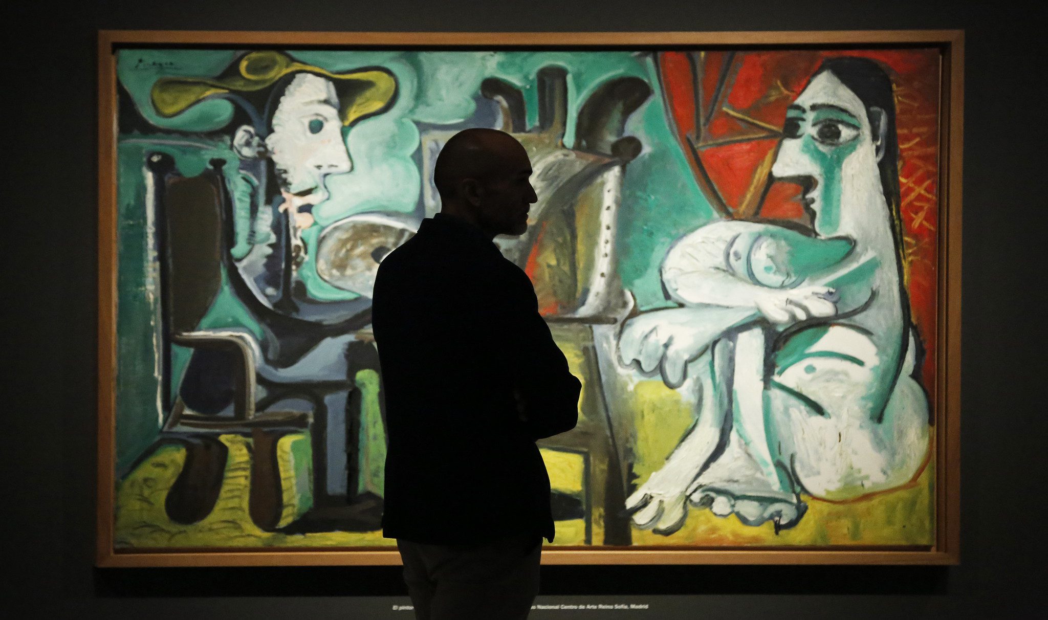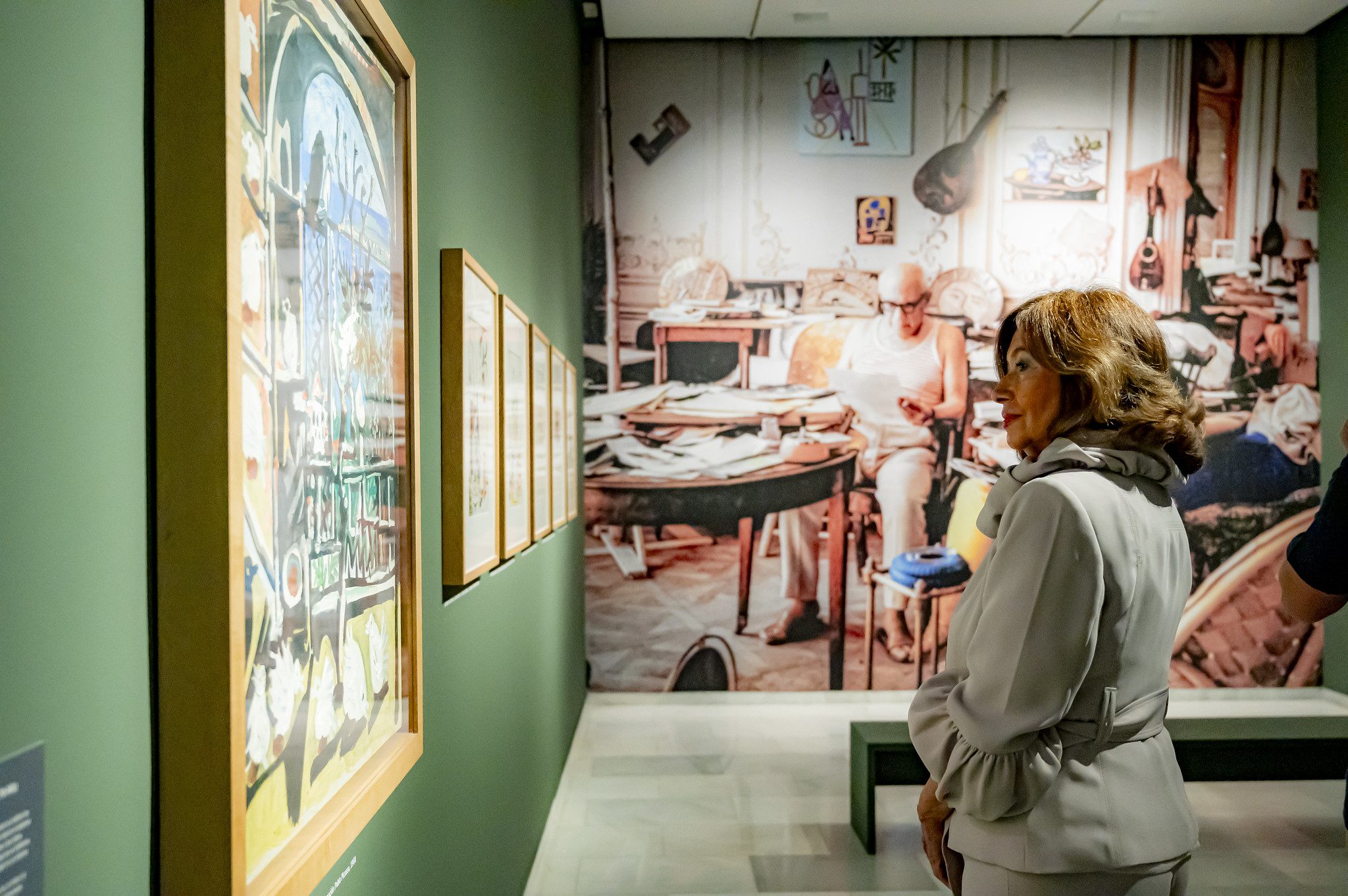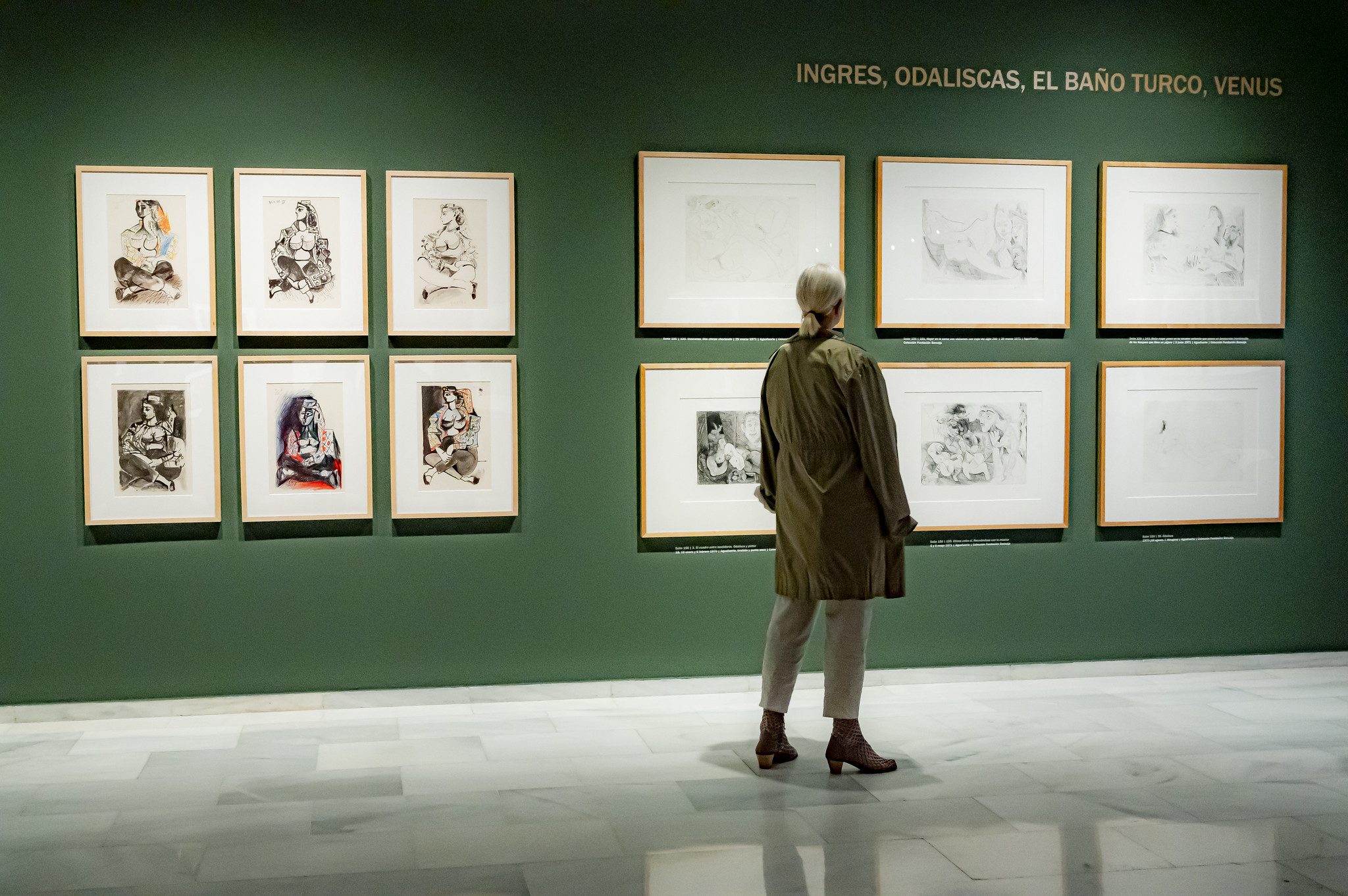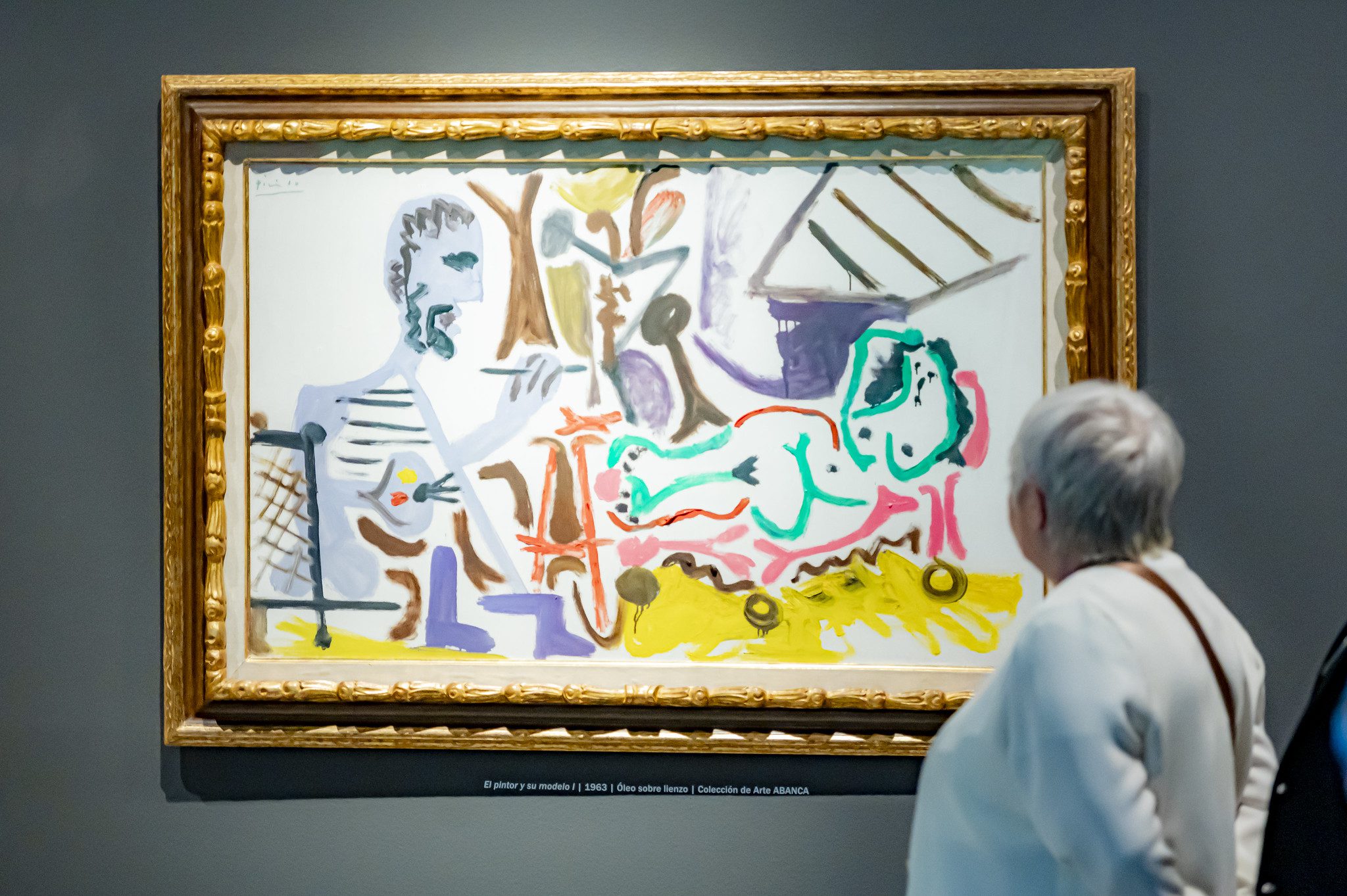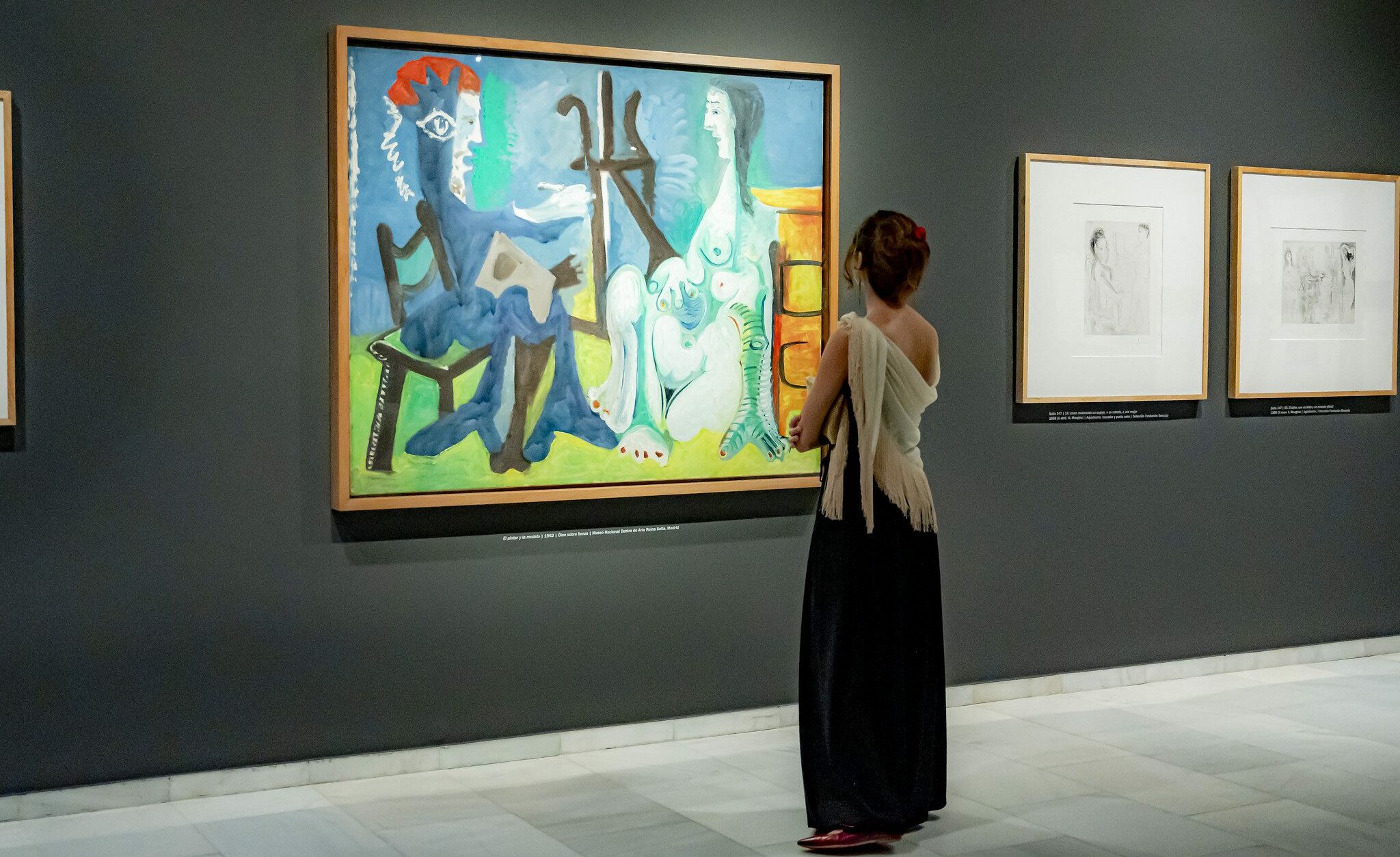 Comisariada por Fernando Castro Flórez y Laura Campos Vicent, la muestra incluye más de doscientas cincuenta obras que revelan la representación recurrente que realizó de este tema en óleos, obra gráfica, dibujos y libros ilustrados, mostrando su obsesión por la metapintura y la fascinación sensual del encuentro con la modelo.