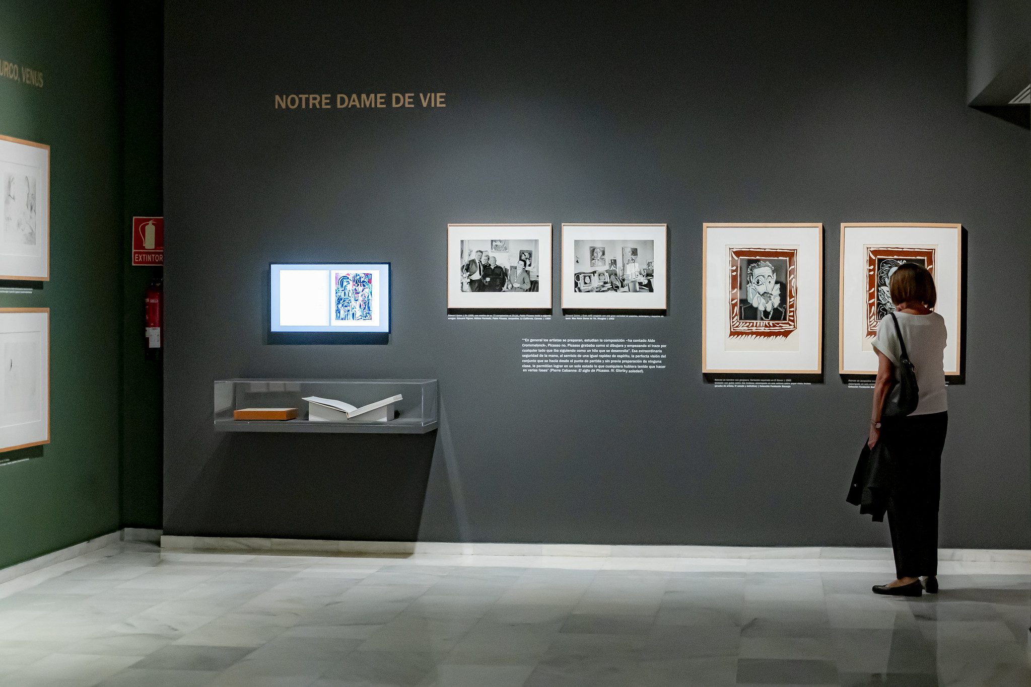 Junto con las obras de Picasso, se exponen fotografías de los archivos de Edward Quinn y David Douglas Duncan, que muestran al artista en su entorno creativo y familiar durante los veinte años de relación con Jacqueline, con especial protagonismo de las residencias y talleres que compartieron en Cannes (La Californie) y Mougins (Notre-Dame-de-Vie).