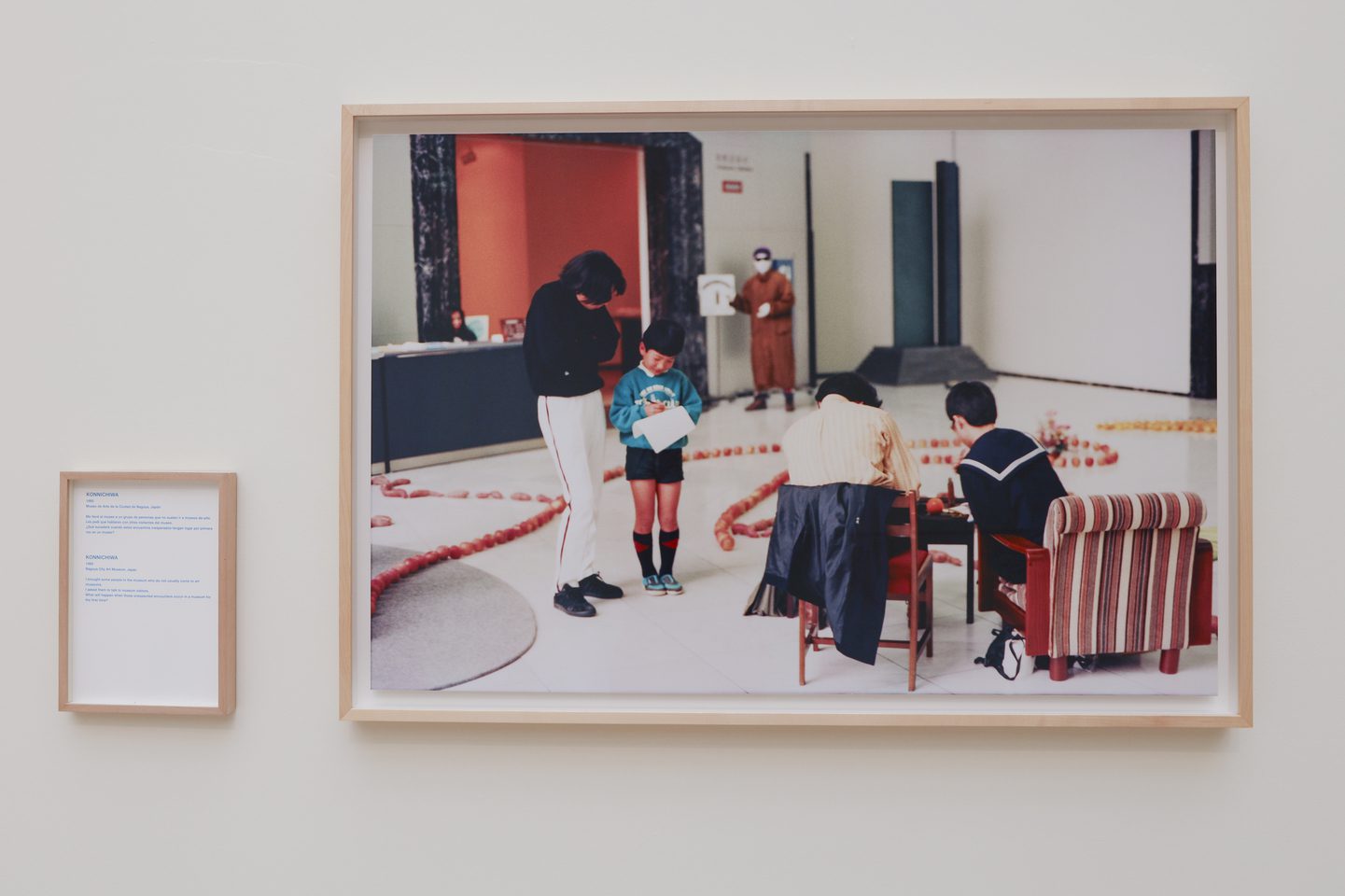 La muestra también incluye una serie de sus primeras obras fotográficas –Tour of Europe with One Eyebrow Shaved (Vuelta por Europa con una ceja afeitada), 1991; Symbiosis (hyacinth & black gold fish) (Simbiosis: jacinto y pez dorado negro), 1992; Christmas in the Southern Hemisphere (Navidad en el hemisferio sur), 1994, o Sitting on the Wave (Sentado sobre la ola), 1998– dando testimonio de su enfoque nómada y efímero de la creación artística y ofreciendo nuevos puntos de vista de la vida.
