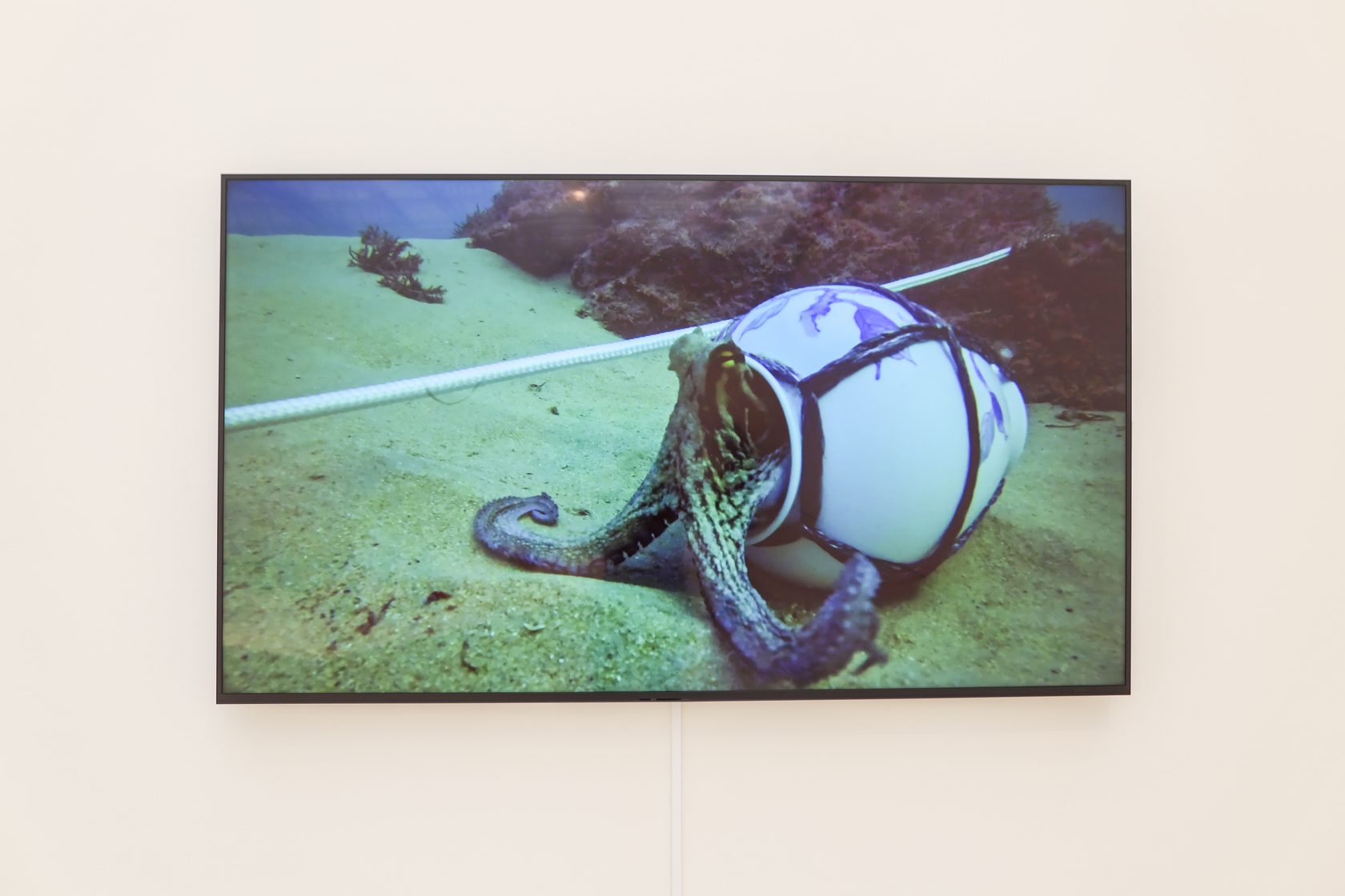 Para esta exposición en el Centro Botín, Shimabuku ha colocado una versión más grande de estas vasijas en el lecho marino frente a la costa de Santander. Así, Going to meet the Octopuses of Santander (Ir a conocer a los pulpos de Santander), 2024, fue una ofrenda para estos cefalópodos y un escenario para observar sus interacciones, que fueron grabadas bajo el agua por un equipo de buceadores al que se unió el propio artista.