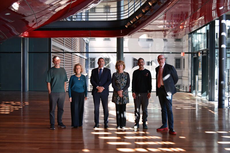 De izquierda a derecha: Gilberto González, comisario; Alicia Chillida, comisaria; Oswaldo Betancort, presidente del Cabildo de Lanzarote; María José Alcántara, directora del Museo Internacional de Arte Contemporáneo (MIAC); Roberto González, comisario, y Fernando Castro Flórez, coordinador del ciclo de conferencias.