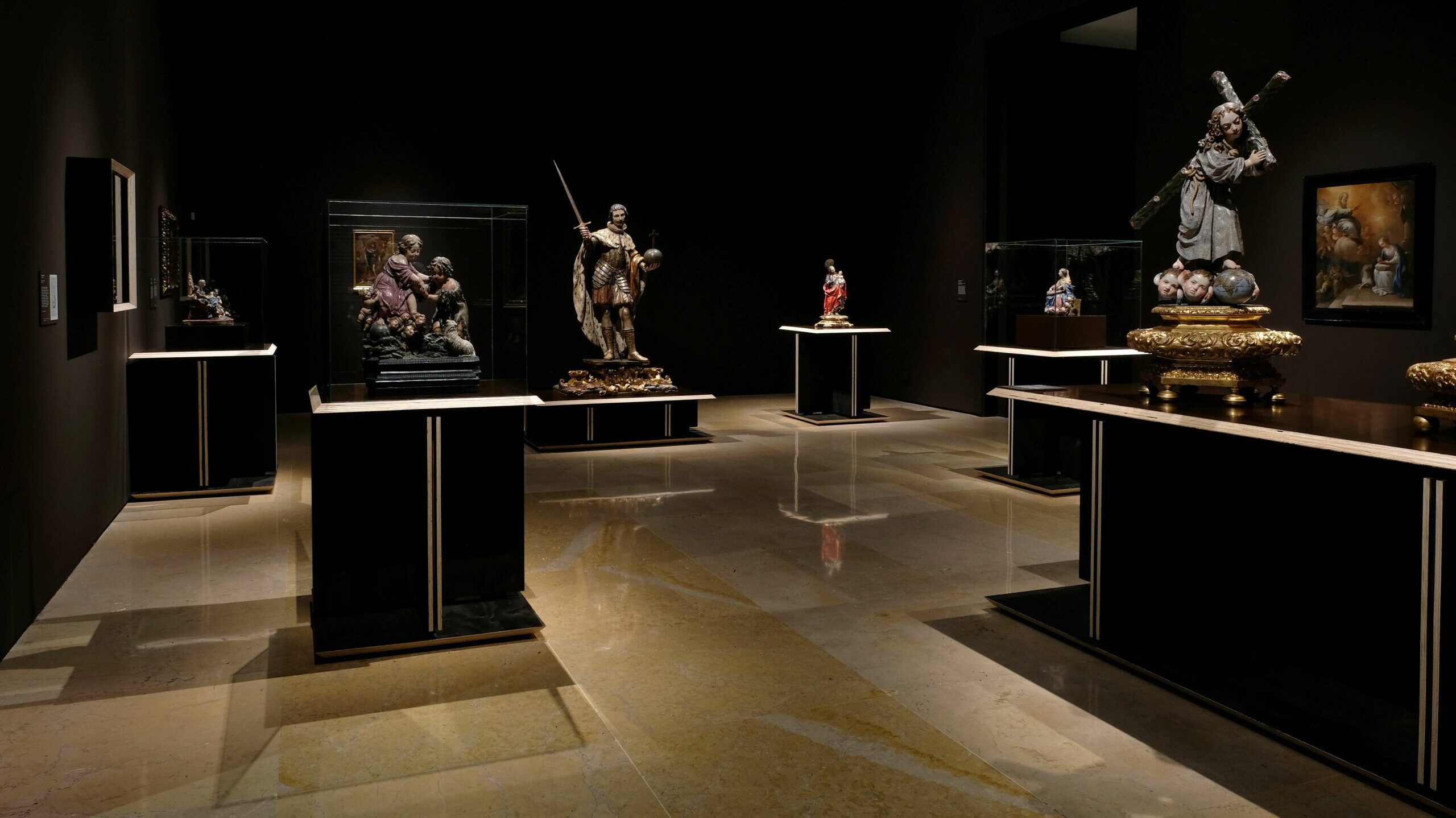 Del total de obras que se pueden ver en la exposición (un total de 57), 14 pertenecen a las colecciones del Museo Nacional de Escultura. Entre ellas se encuentran el Tránsito de la Magdalena, que se presenta al público en esta muestra tras su reciente adquisición por parte del Ministerio de Cultura; o las 19 figuras pertenecientes al conjunto de la Cabalgata de los Reyes Magos, que se exhibirá íntegramente por vez primera desde su ingreso en las colecciones en 2017 tras su paso por el taller de restauración del Museo.