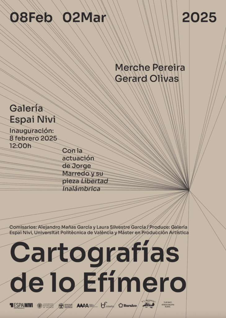 Esta muestra es el resultado de la colaboración existente entre la Galería y la Universitat Politècnica de València (UPV), materializada a través del premio otorgado por Espai Nivi a Pereira y Olivas en el marco del Máster de Producción Artística, concretamente en la Convocatoria PAM de 2024.