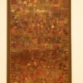 Desde sus más célebres series, como Bribes de corps, pasando por sus particulares caftanes, hasta otras obras menos conocidas, como su nutrida producción de autorretratos, la exposición revela, más que una evolución estilística de los diferentes momentos formales de su obra, una serie de recursos y estrategias plásticas construidas sobre colores y formas, líneas y retículas, o repetición de figuras, pero también sobre las palabras y letras que pueblan su obra.