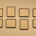 Una vida en pocas líneas se organiza de forma cronológica y recursiva, de modo que avanza y vuelve sobre sí misma, una y otra vez, a tiempos pasados, ocupando un total de 12 salas. Las obras se muestran en relación con los lugares en los que Caland desarrolló su prolífica obra: los tumultuosos años del Beirut posterior a la independencia, pero anterior a la Guerra Civil, el liberalismo utópico del París de los años setenta y ochenta y la decadencia bohemia de la escena artística de Los Ángeles, concentrada en Venice Beach, en los años noventa y primeros dos mil.