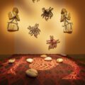La muestra continúa con el capítulo Visión, centrada en el proceso de la enfermedad. Todos los elementos de esta sala aluden al cáncer de mama que la artista padeció en el pasado y que ha marcado significativamente su trayectoria: la serie Mére-Mer (2024), un conjunto de cangrejos que descienden por la pared; Lo divino Femenino (2024), un tapiz con la Cruz de Camarga bordada, sobre el que descansan caracoles, utilizados para la lectura adivinatoria en la religión afrocubana y que forman parte del proceso creativo de Vargas, y Exvotos (2022), moldes utilizados para las sesiones de radioterapia cubiertos de oro. Esta sección concluye con la carta del Tarot de “El Mundo”, símbolo del renacimiento sin necesidad de morir.