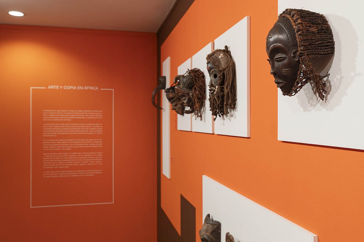 El segundo bloque —Arte y copia en África— reúne objetos que nunca tuvieron uso ritual ni formaron parte del contexto social, político o religioso de ningún grupo tradicional africano. Se trata de copias inspiradas en obras que las sociedades tradicionales africanas sí realizaron en el contexto de sus sistemas de creencias, cuya producción estuvo motivada por la demanda comercial del mercado occidental, principalmente en Europa y Estados Unidos.
